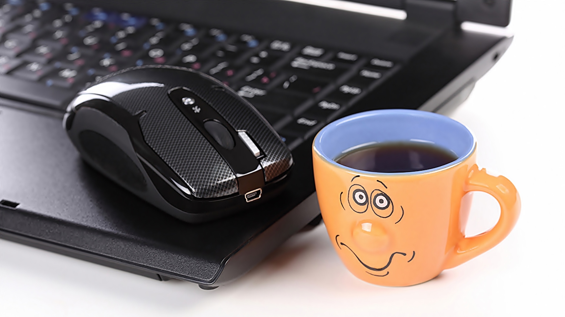 Edytor tapety: Kubek herbaty obok laptopa i myszki