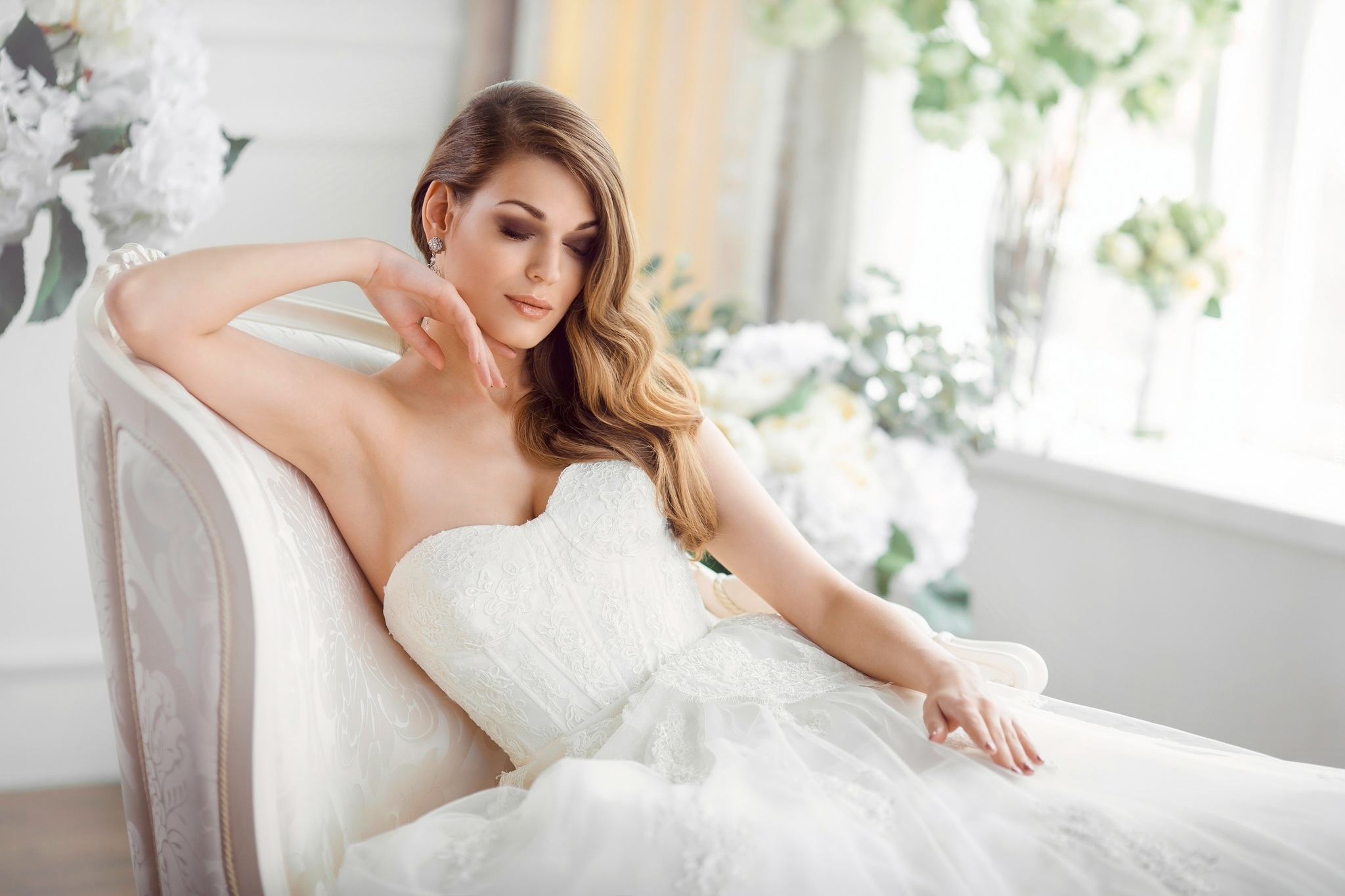 Edytor tapety: Panna młoda w fotelu z żakardowym obiciem