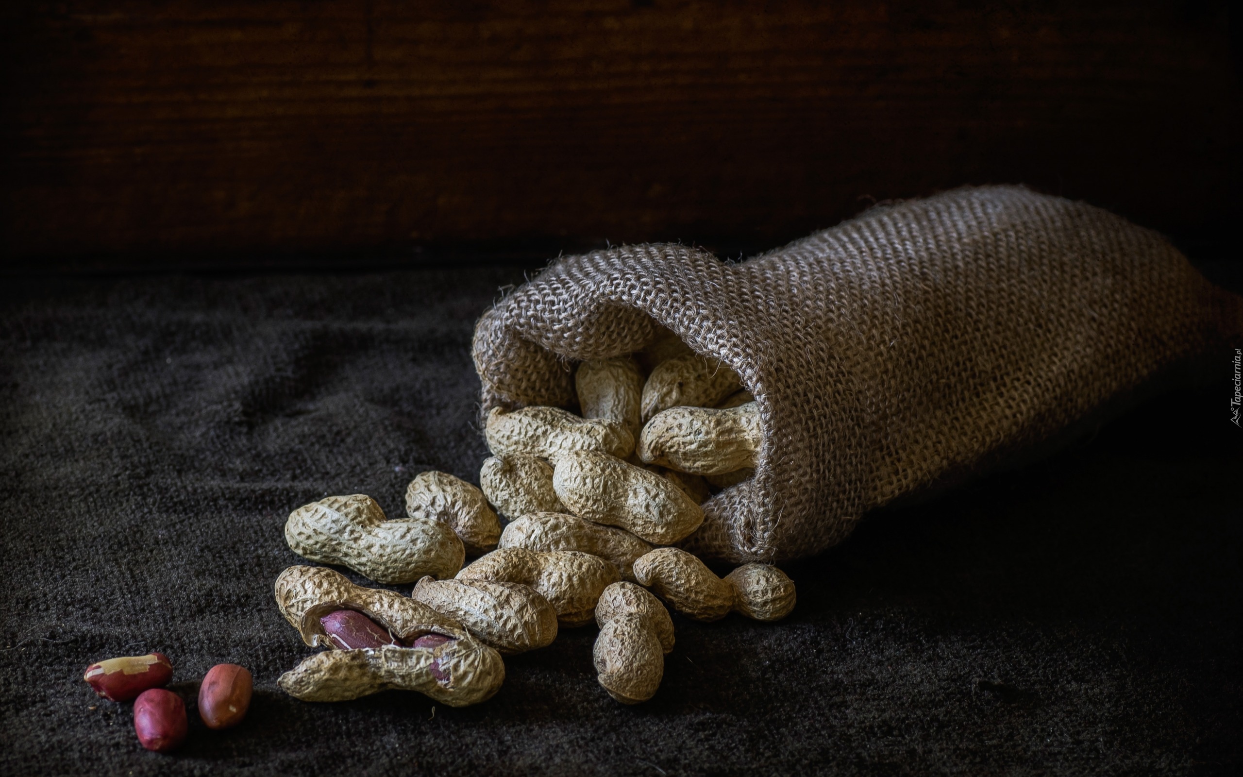 Edytor tapety: Orzeszki ziemne wysypane z worka