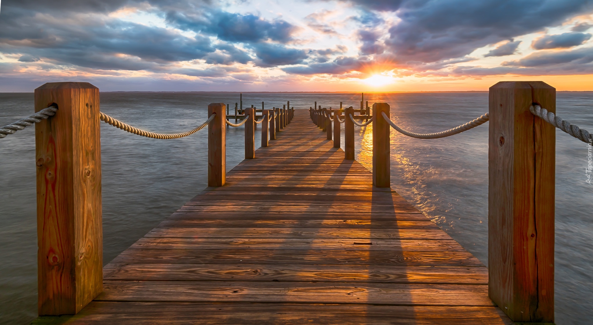 Edytor tapety: Molo na Oceanie Atlantyckim w promieniach zachodzącego słońca