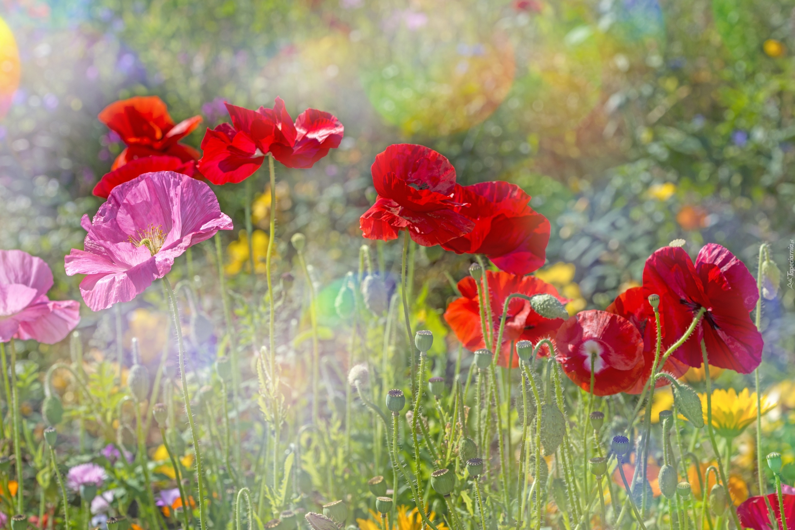 Edytor tapety: Kolorowe maki na rozmytym tle