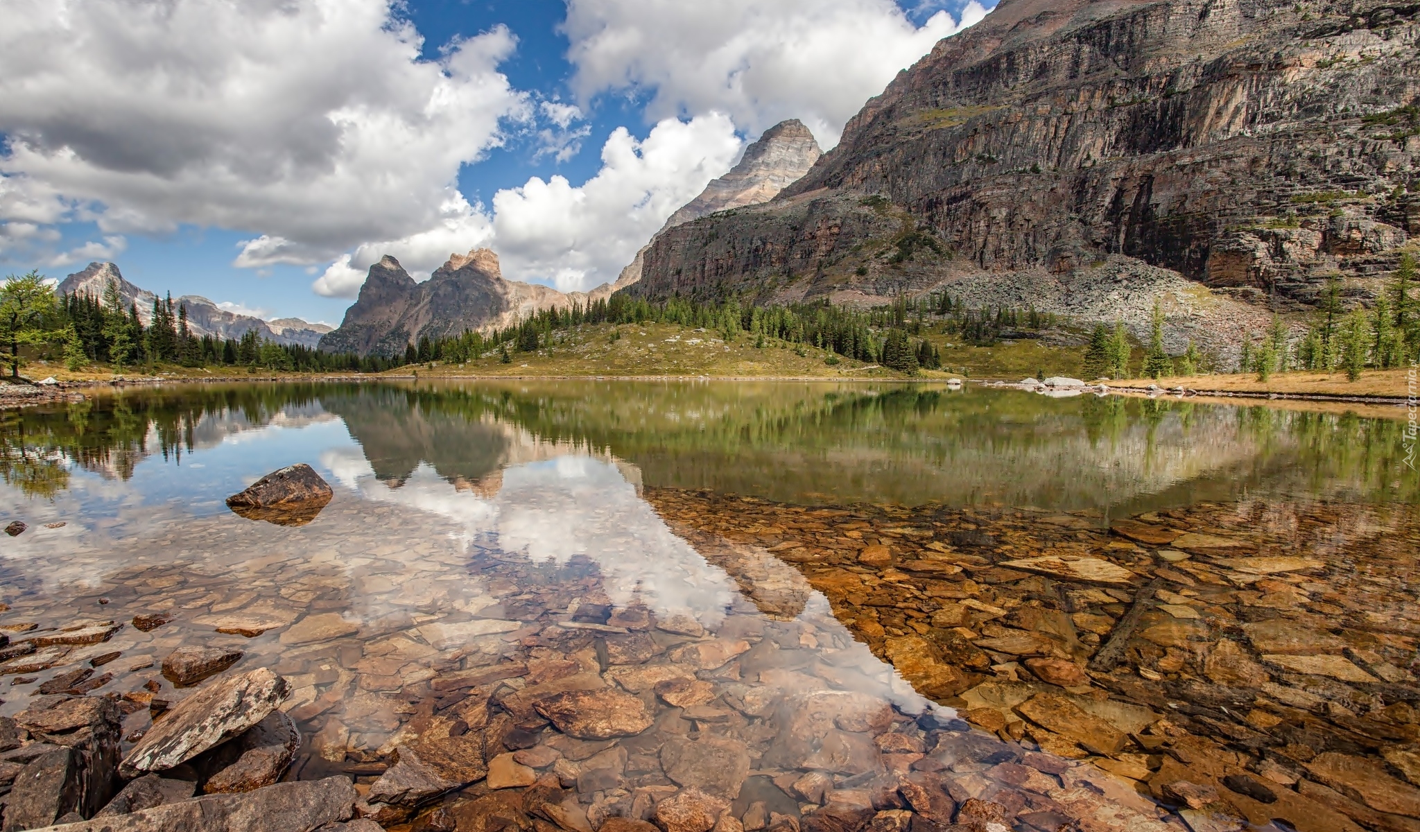 Edytor tapety: Kamieniste jezioro w górach