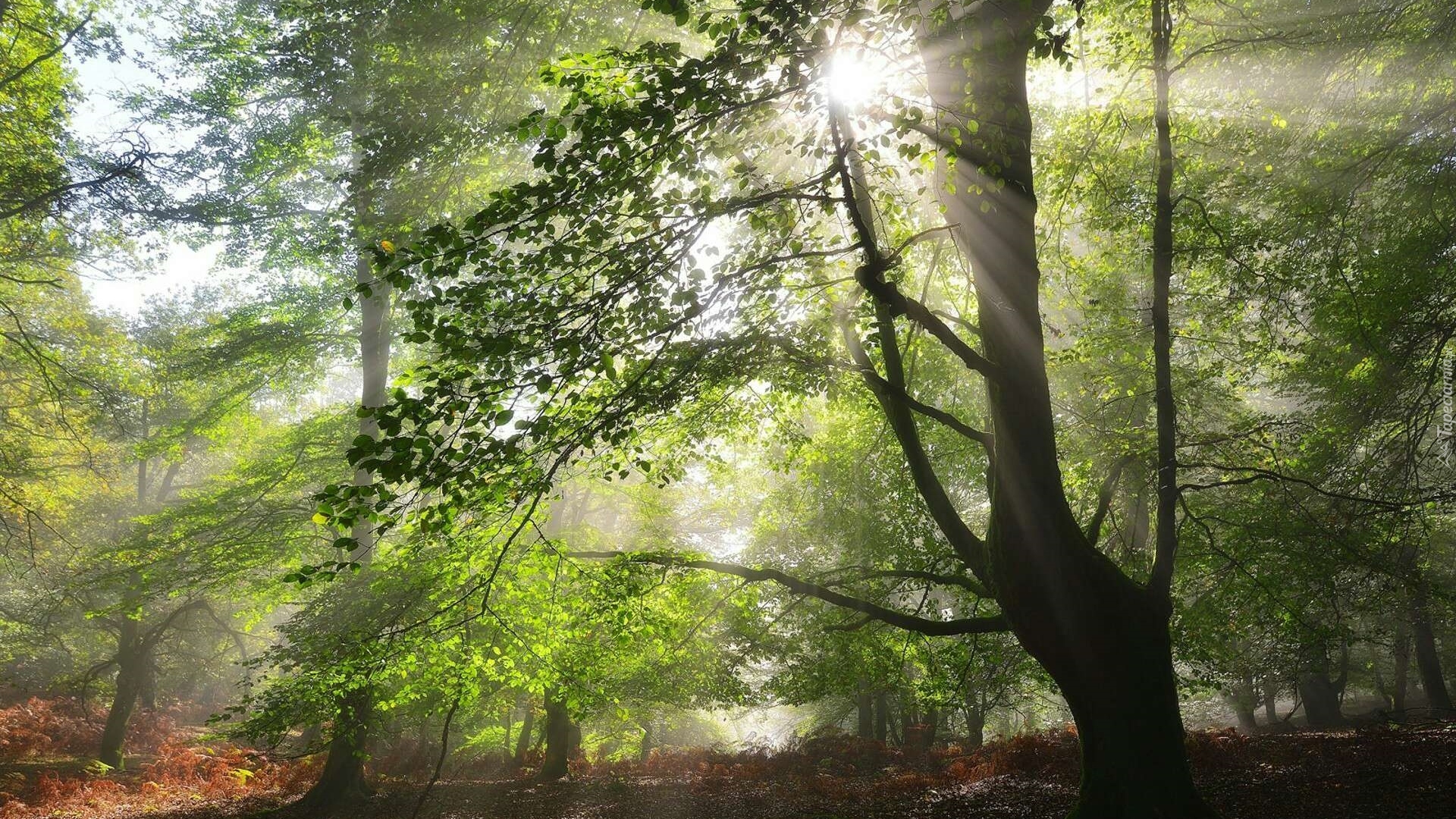 Edytor tapety: Słoneczne promienie prześwitują przez liście drzew