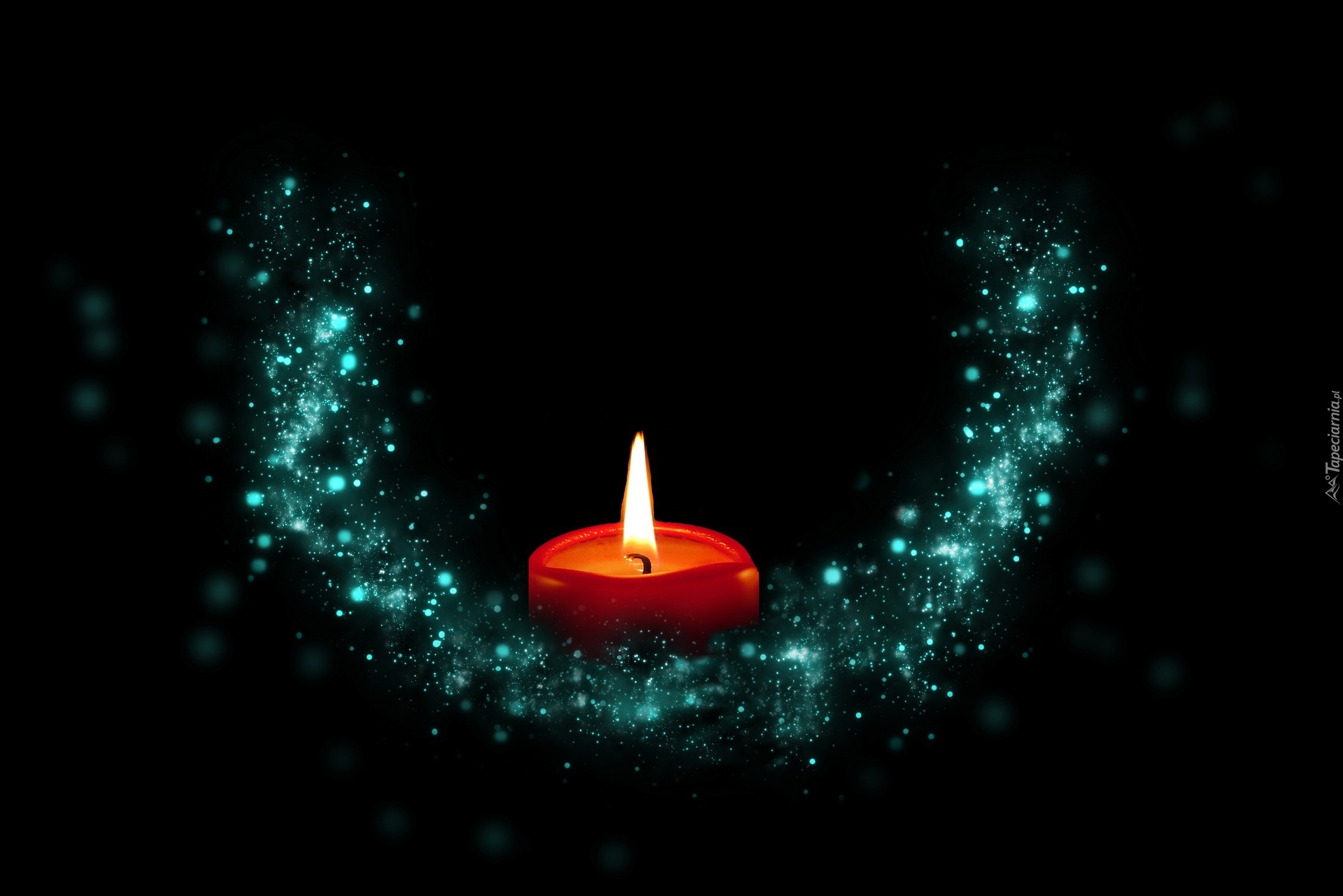 Edytor tapety: Zapalona świeczka na czarnym tle
