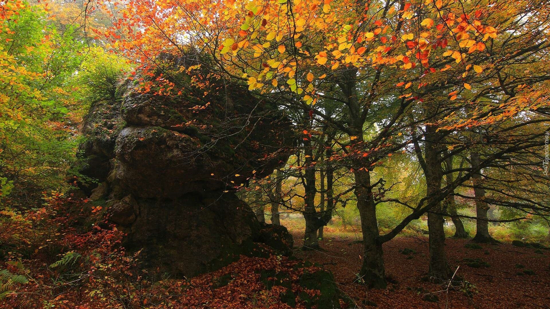 Edytor tapety: Drzewa przy skale jesienią