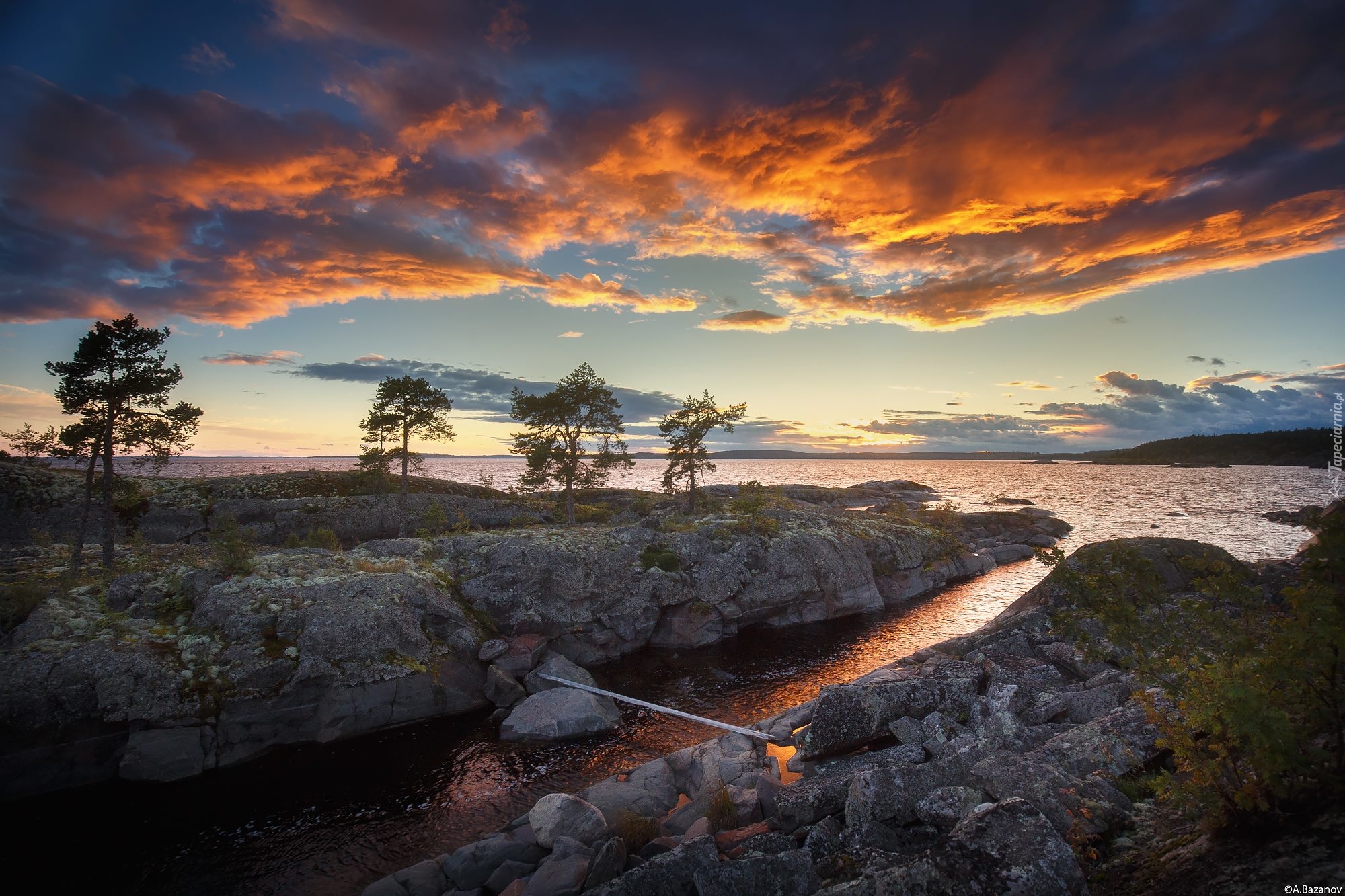 Edytor tapety: Skalisty brzeg jeziora Ładoga