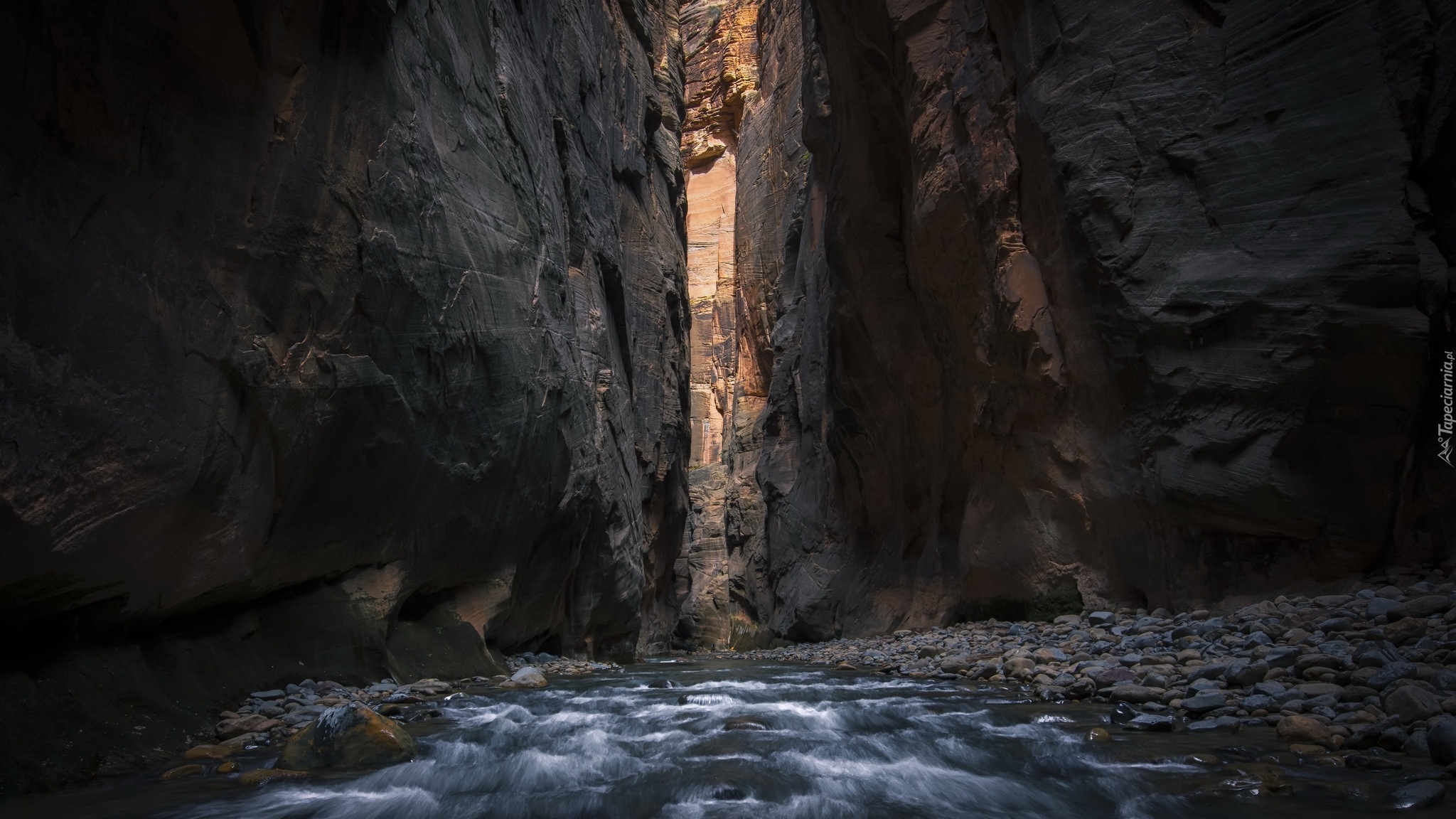 Edytor tapety: Wąwóz z kamienistą rzeką