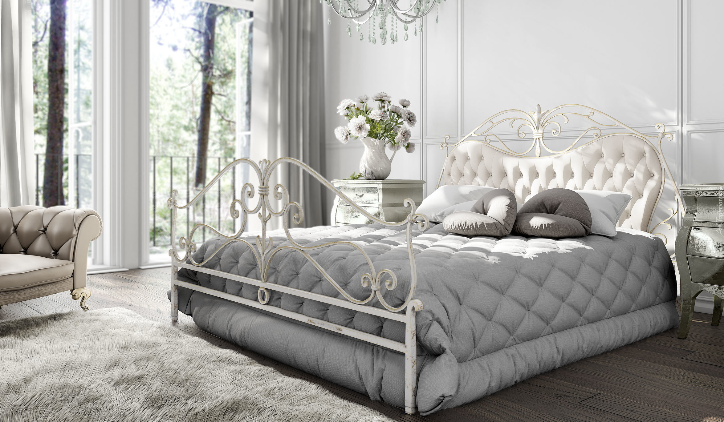 Edytor tapety: Pokój sypialny z dużym łóżkiem