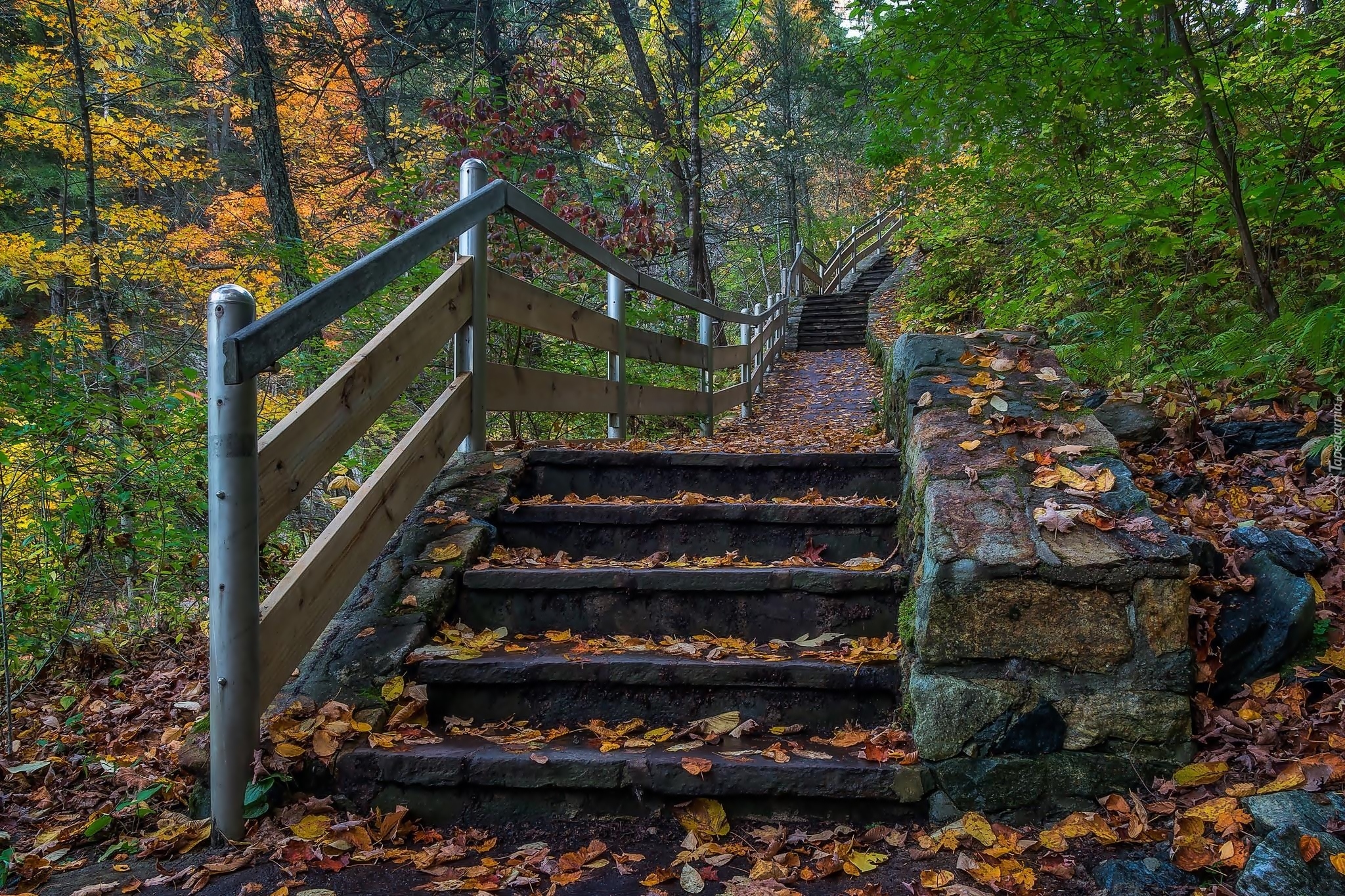 Edytor tapety: Schody w Parku stanowym Kent Falls w Connecticut