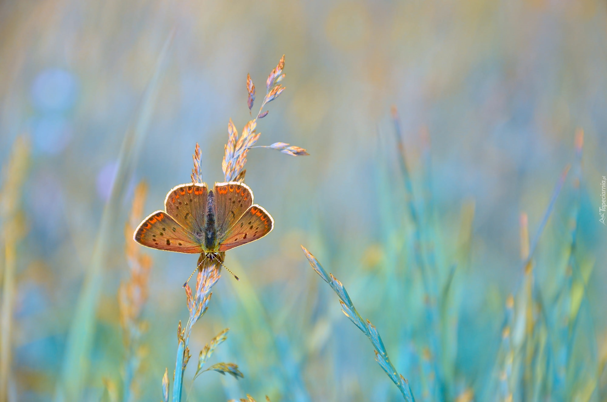 Edytor tapety: Modraszek ikar na źdźbłach trawy