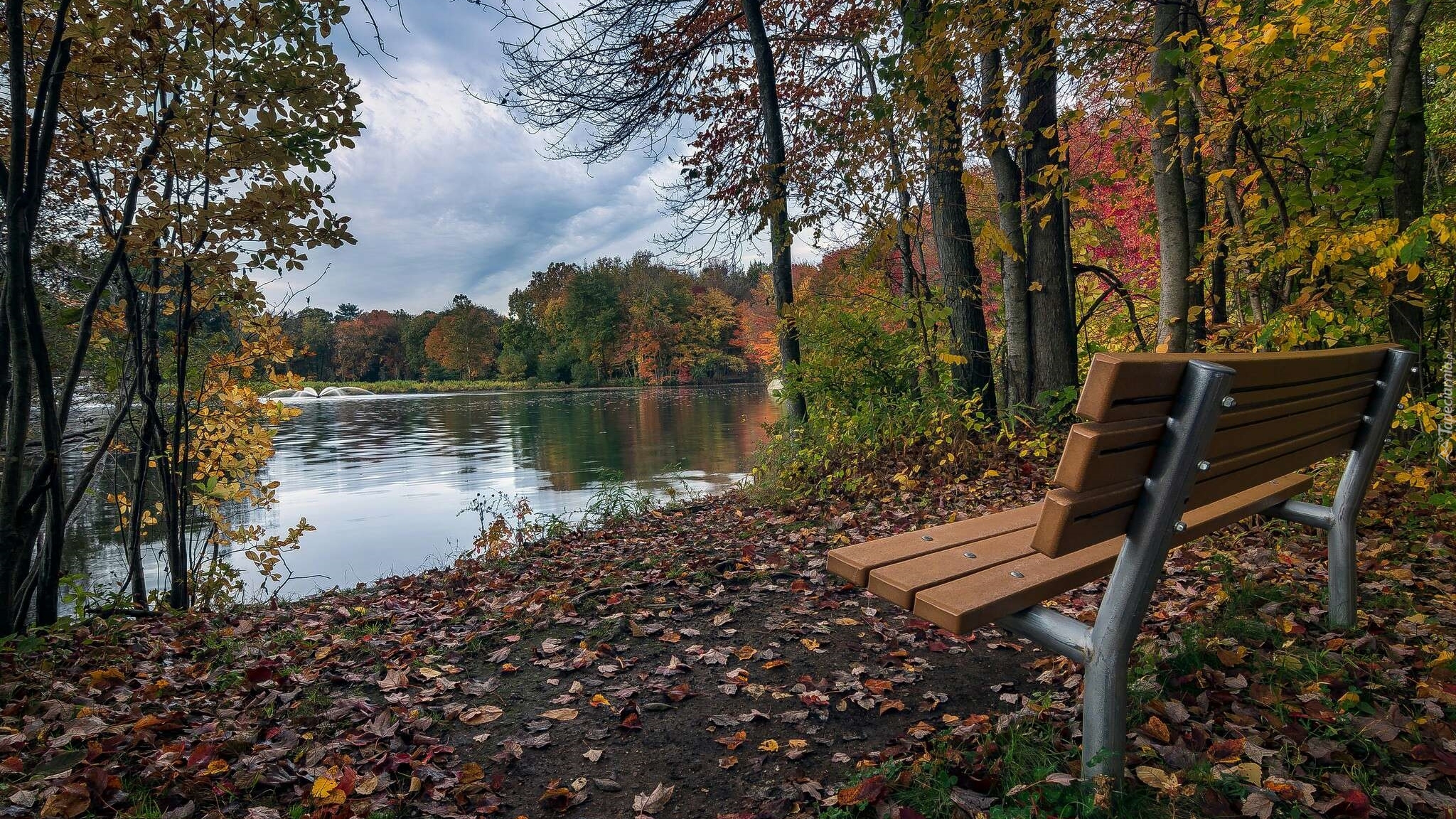 Edytor tapety: Ławka w Parku Twin Brooks w mieście Trumbull