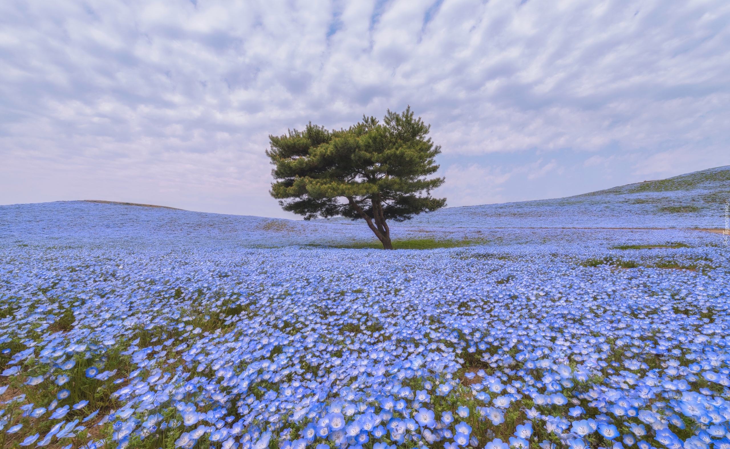 Edytor tapety: Drzewo na kwiatowej łące