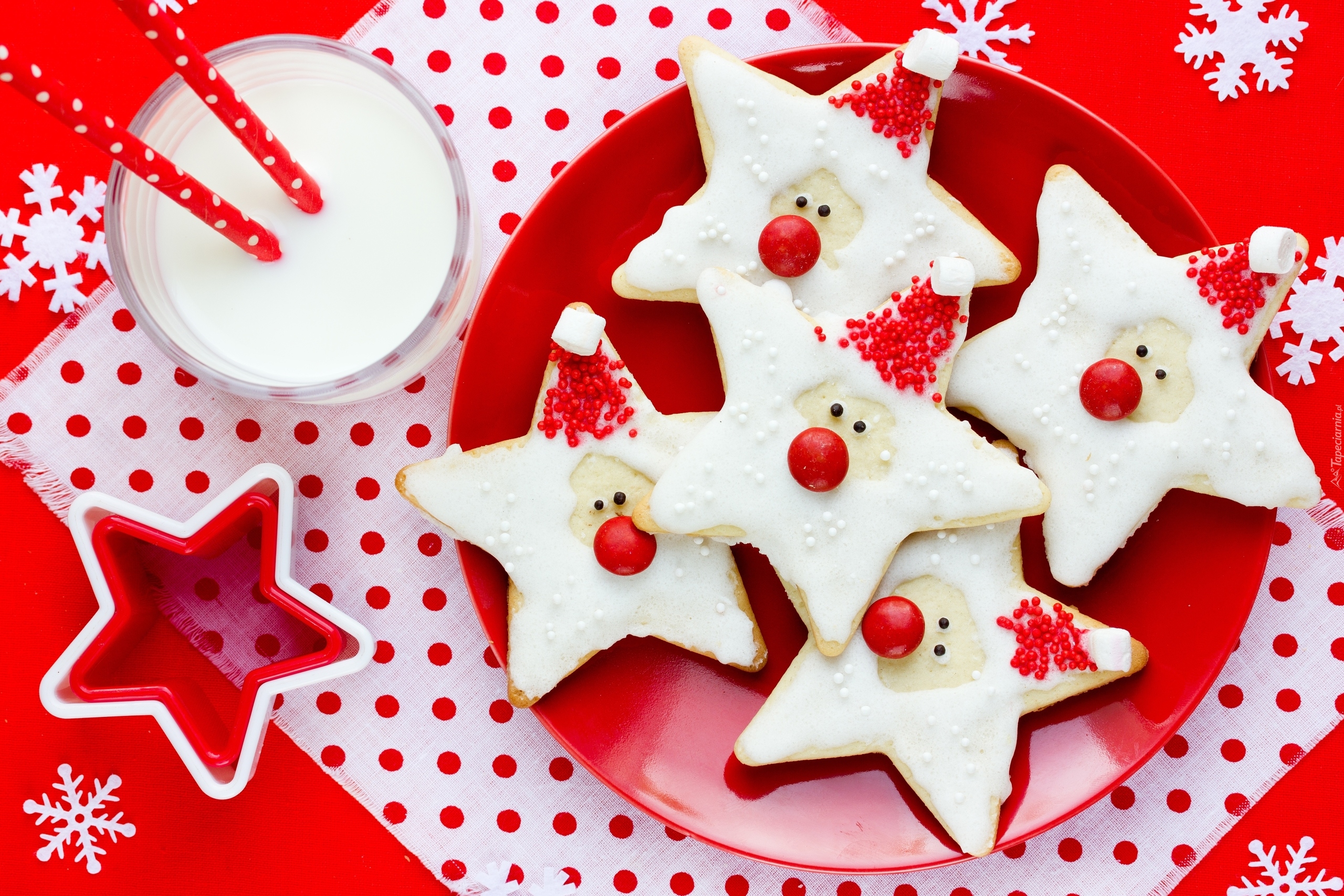 Edytor tapety: Świąteczne pierniki na talerzyku obok szklanki z mlekiem