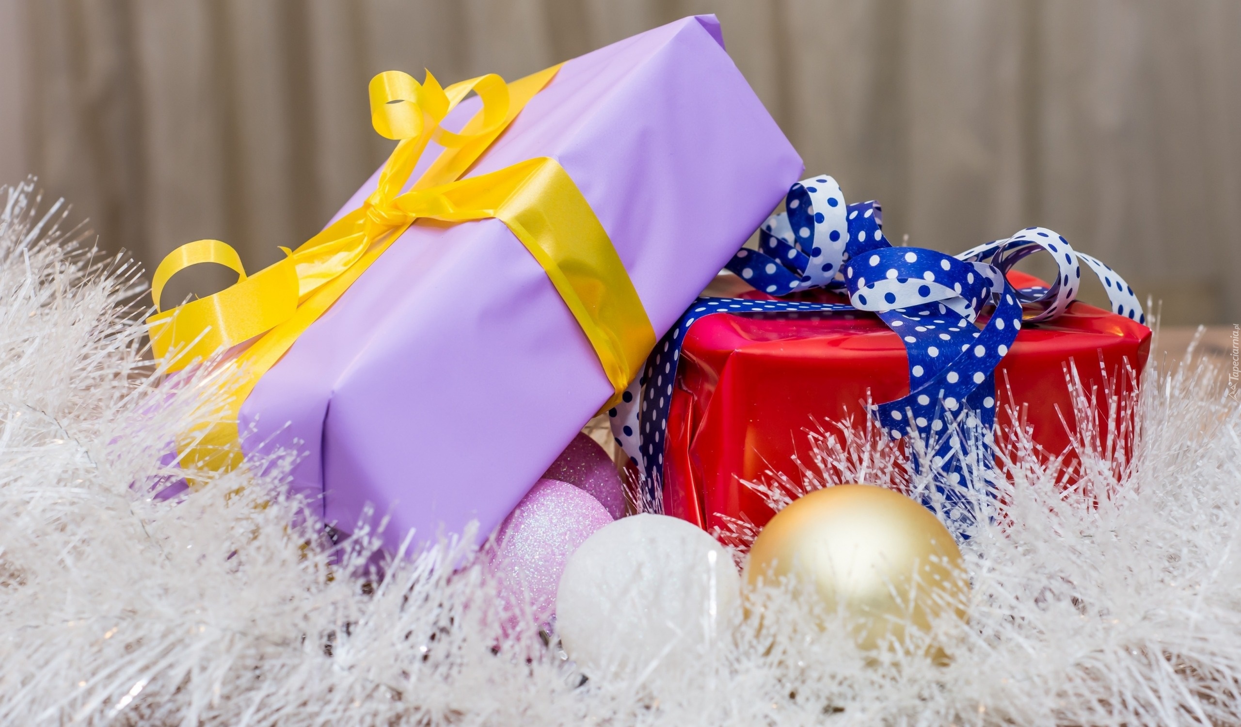 Edytor tapety: Świąteczne prezenty przewiązane wstążkami