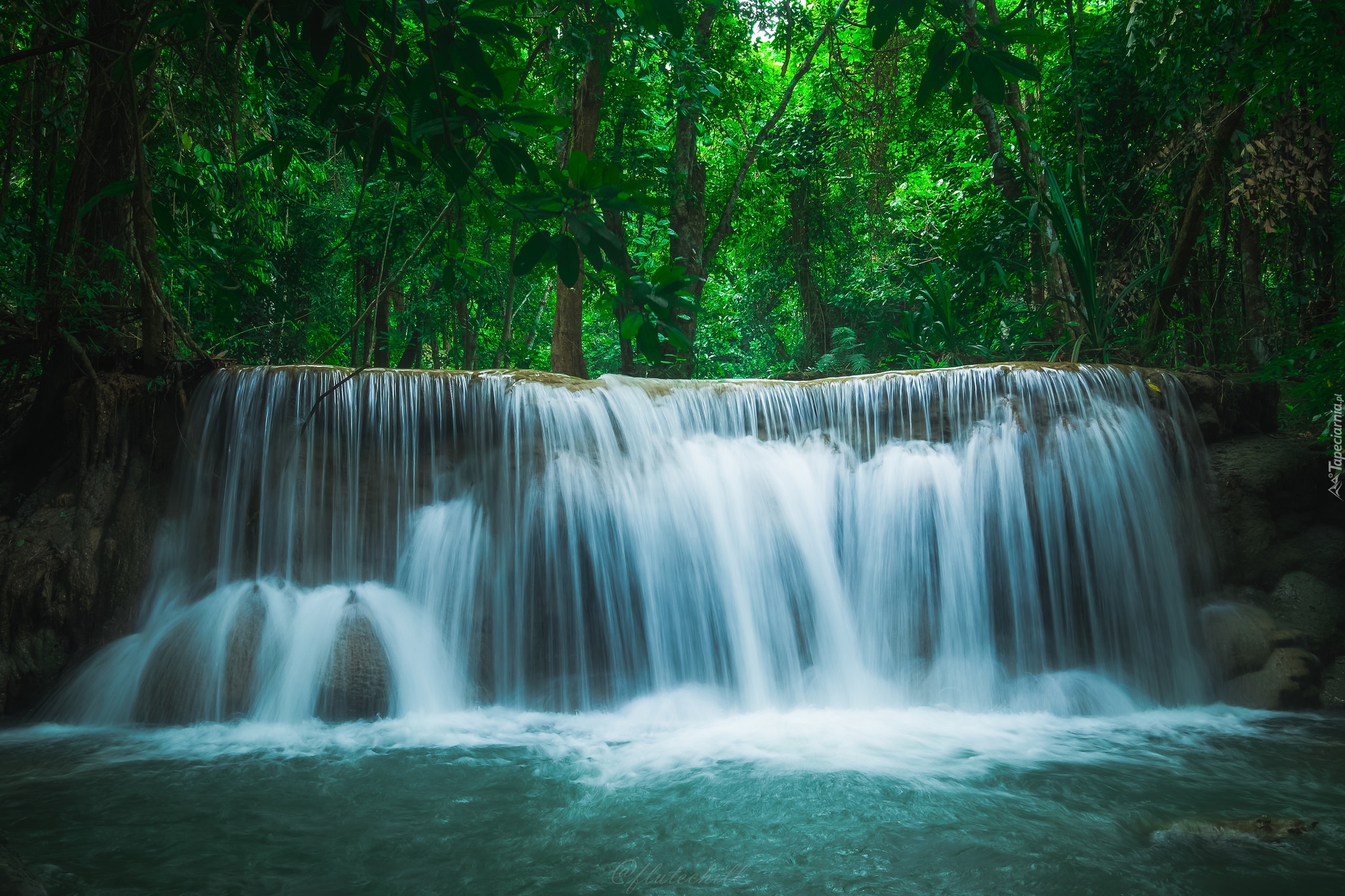 Edytor tapety: Rzeka z wodospadem w lesie