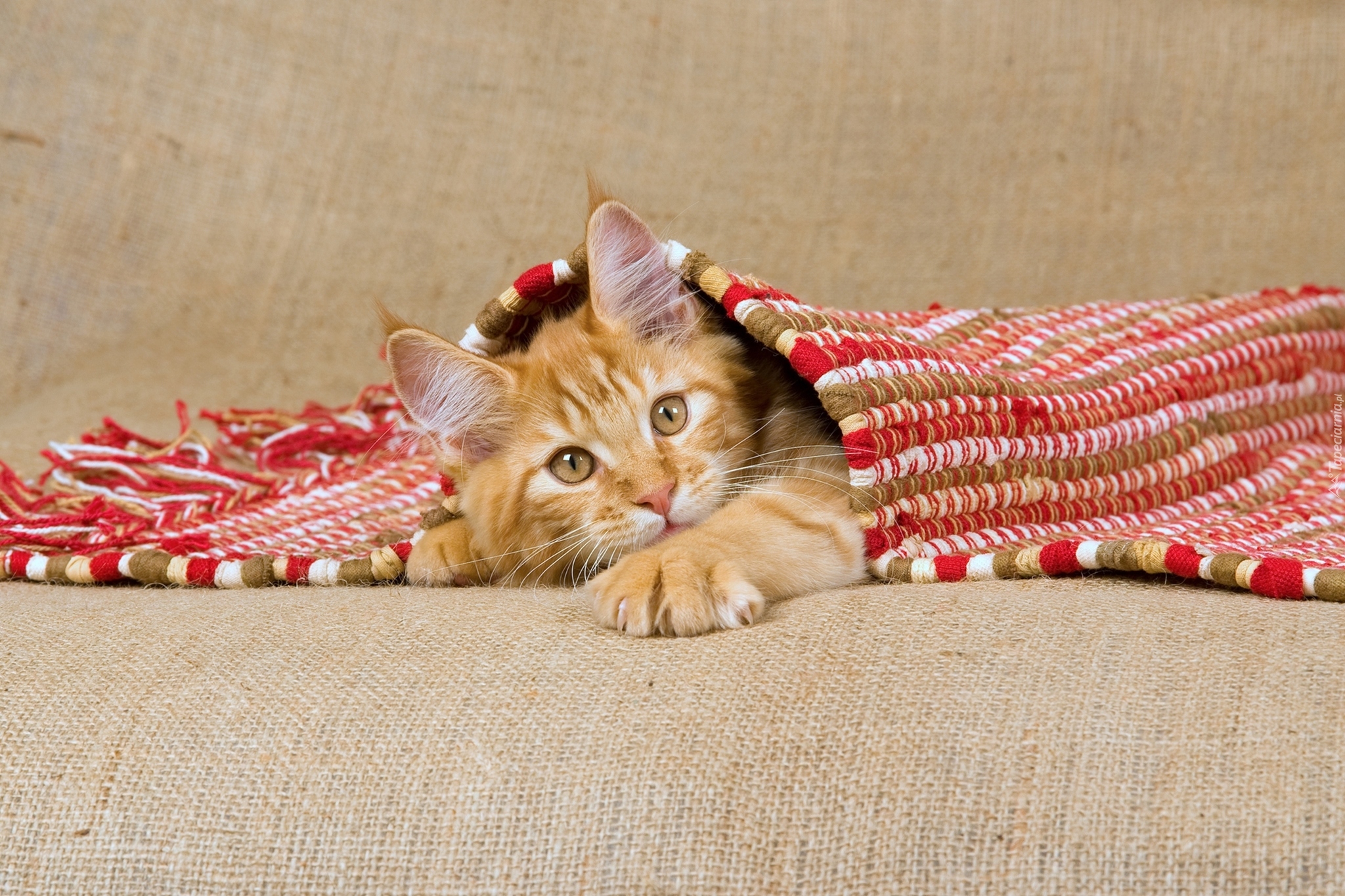 Edytor tapety: Rudy kotek pod przykryciem