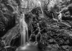 Edytor tapety: Mostek nad kamienistym wodospadem