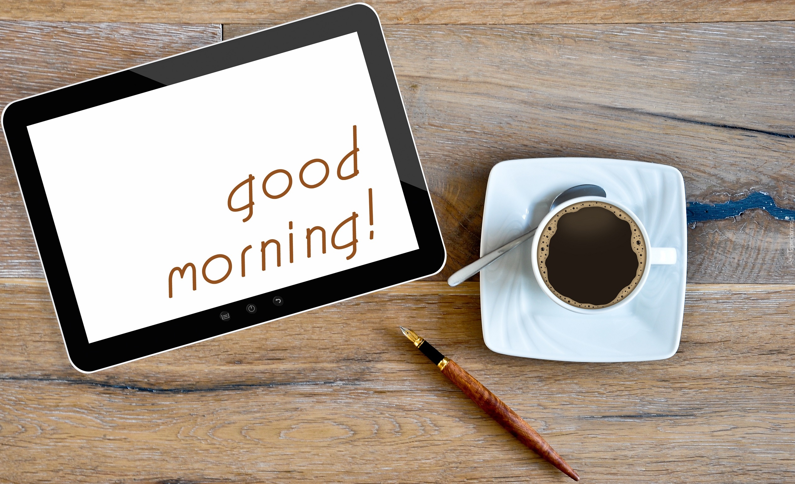 Edytor tapety: Kawa w filiżance obok tabletu i pióra