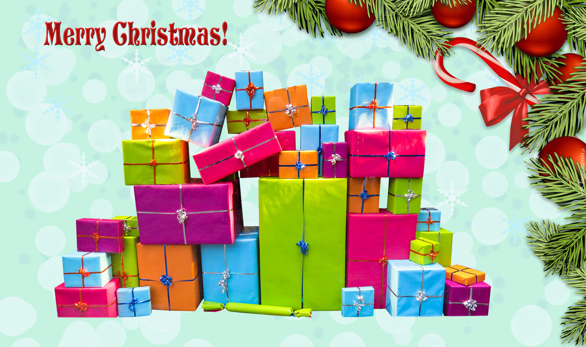 Edytor tapety: Góra świątecznych prezentów z życzeniami