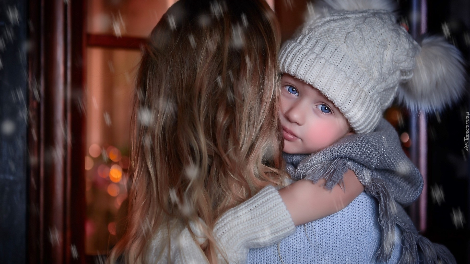 Edytor tapety: Kobieta tuląca dziewczynkę