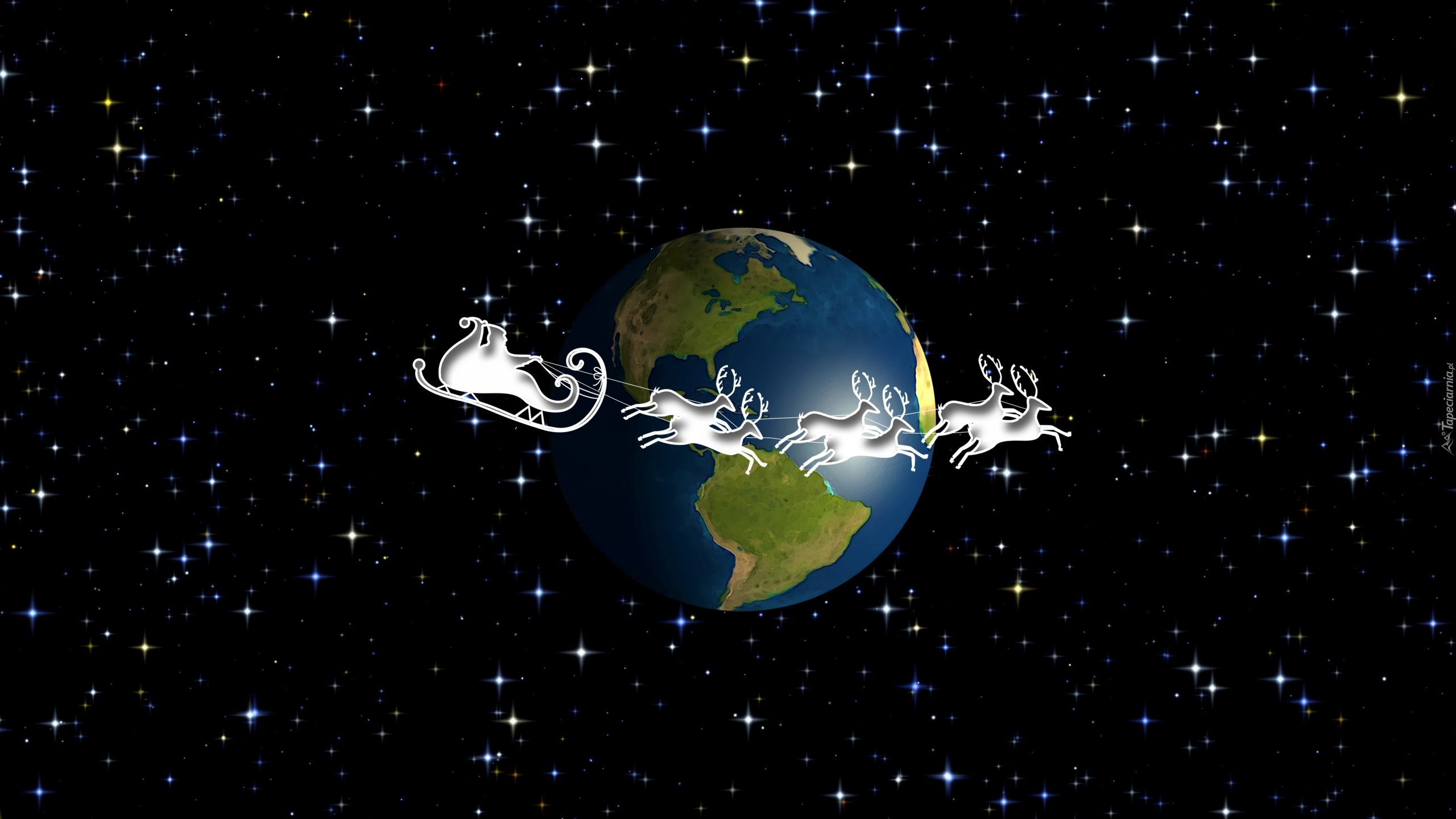 Edytor tapety: Mikołaj w saniach okrąża kulę ziemską