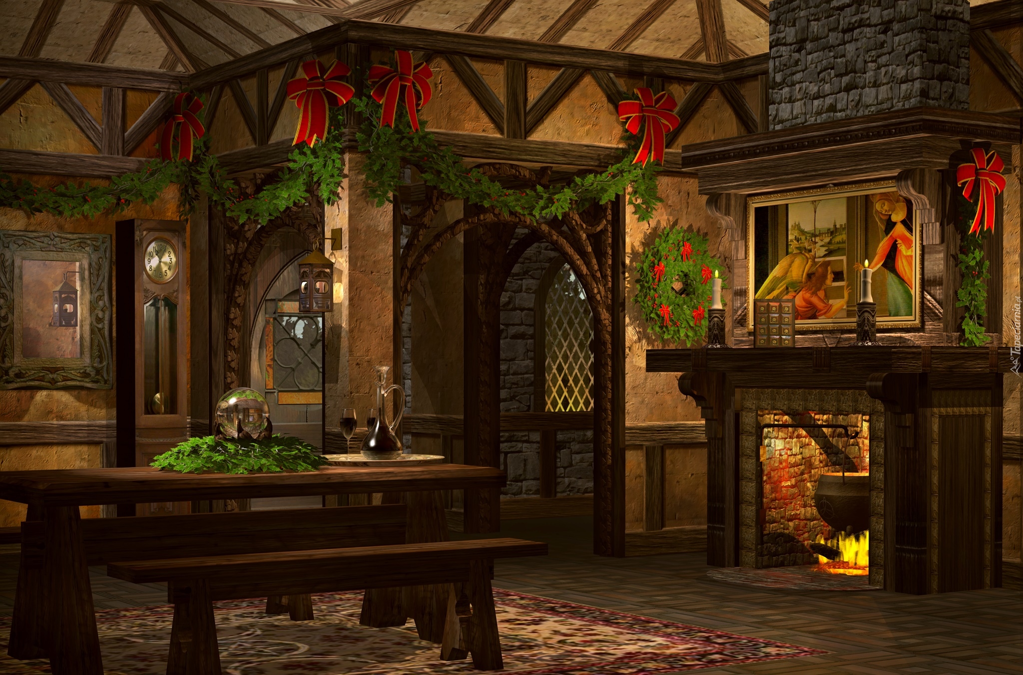 Edytor tapety: Pokój z kominkiem w świątecznej odsłonie