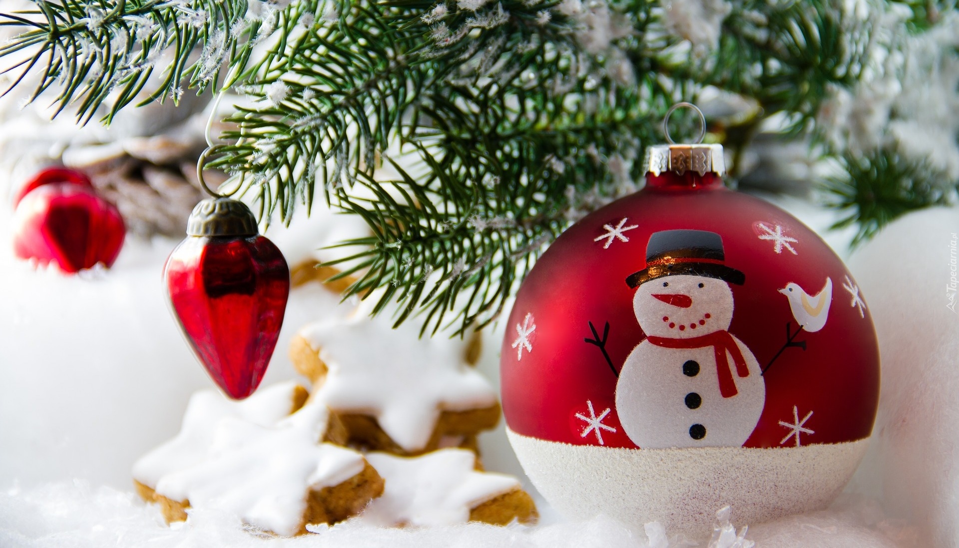 Edytor tapety: Bombka z bałwankiem na choince