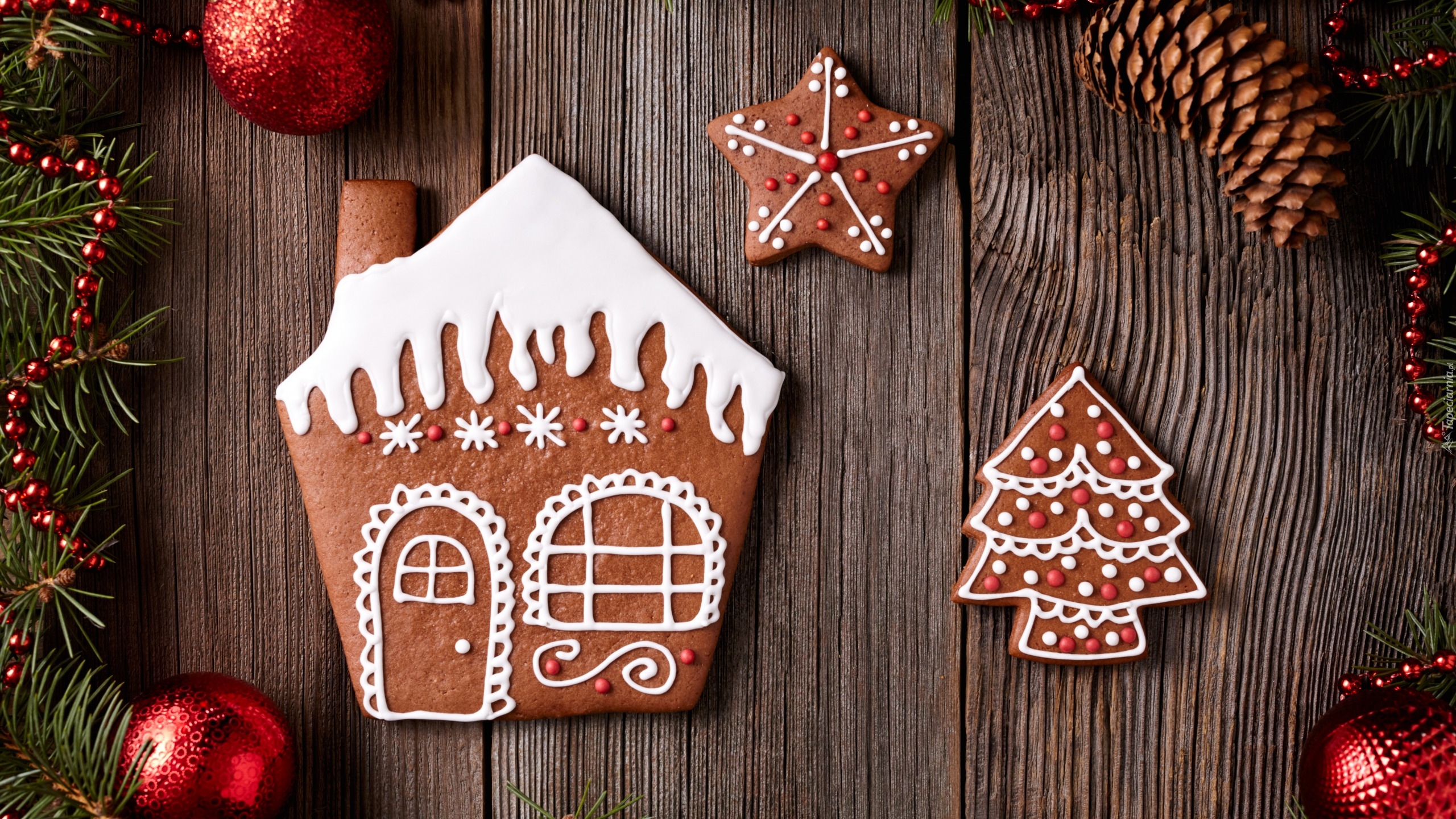 Edytor tapety: Świąteczne pierniki położone na deskach