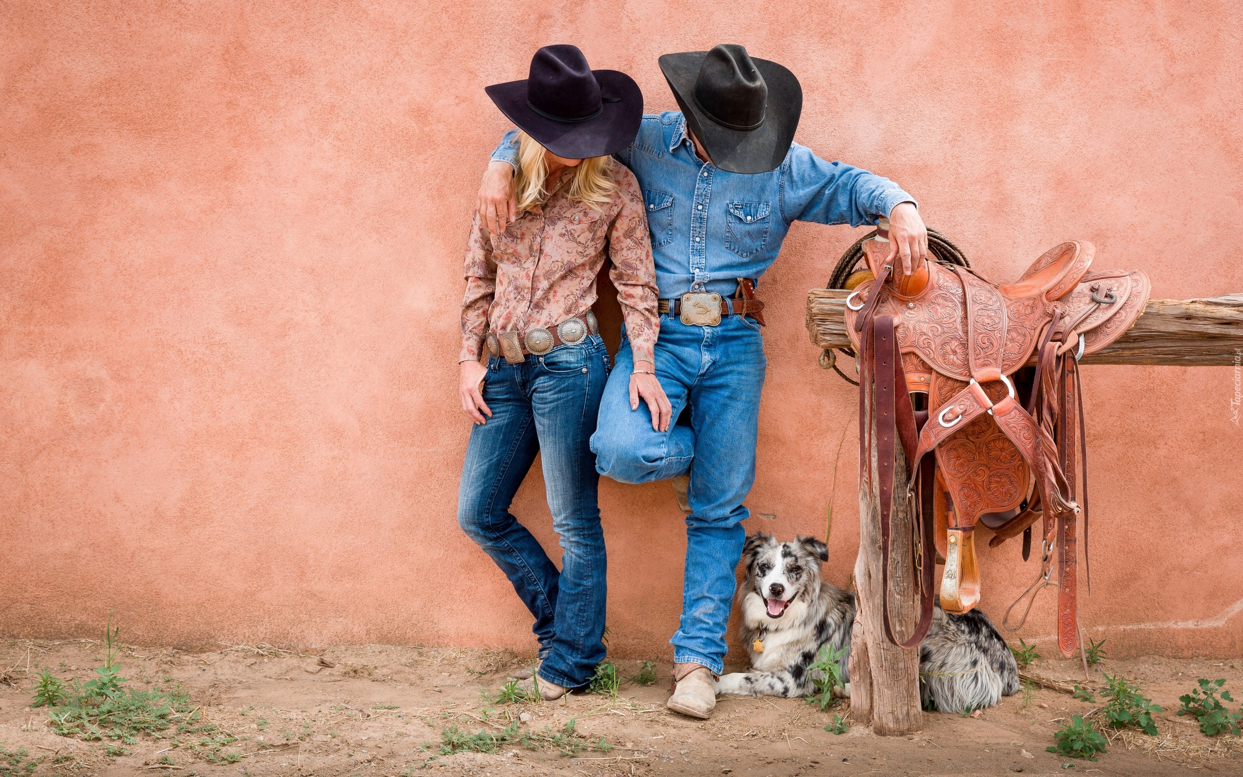 Edytor tapety: Kowboje z owczarkiem australijskim