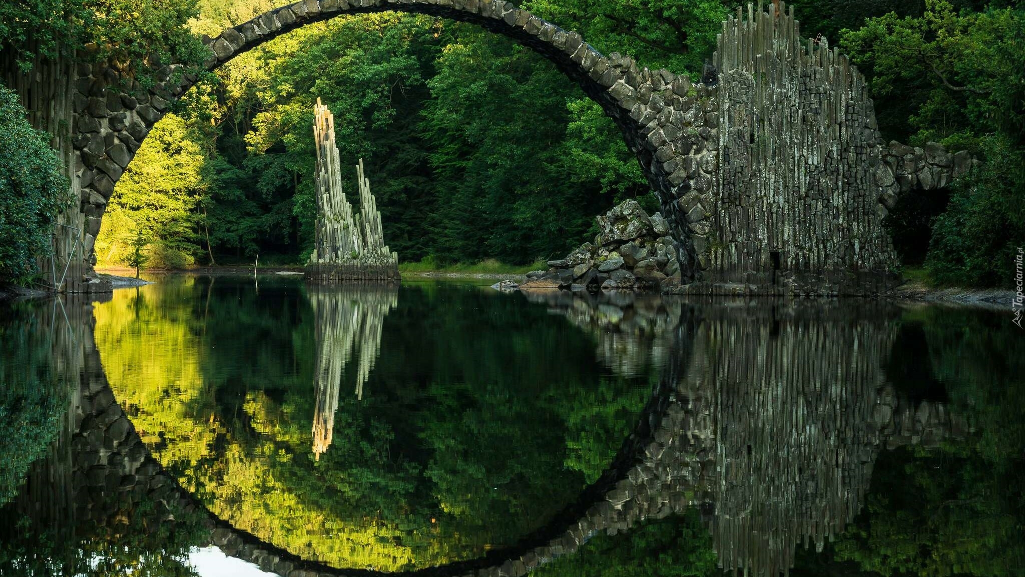 Edytor tapety: Most łukowy nad jeziorem Rakotz