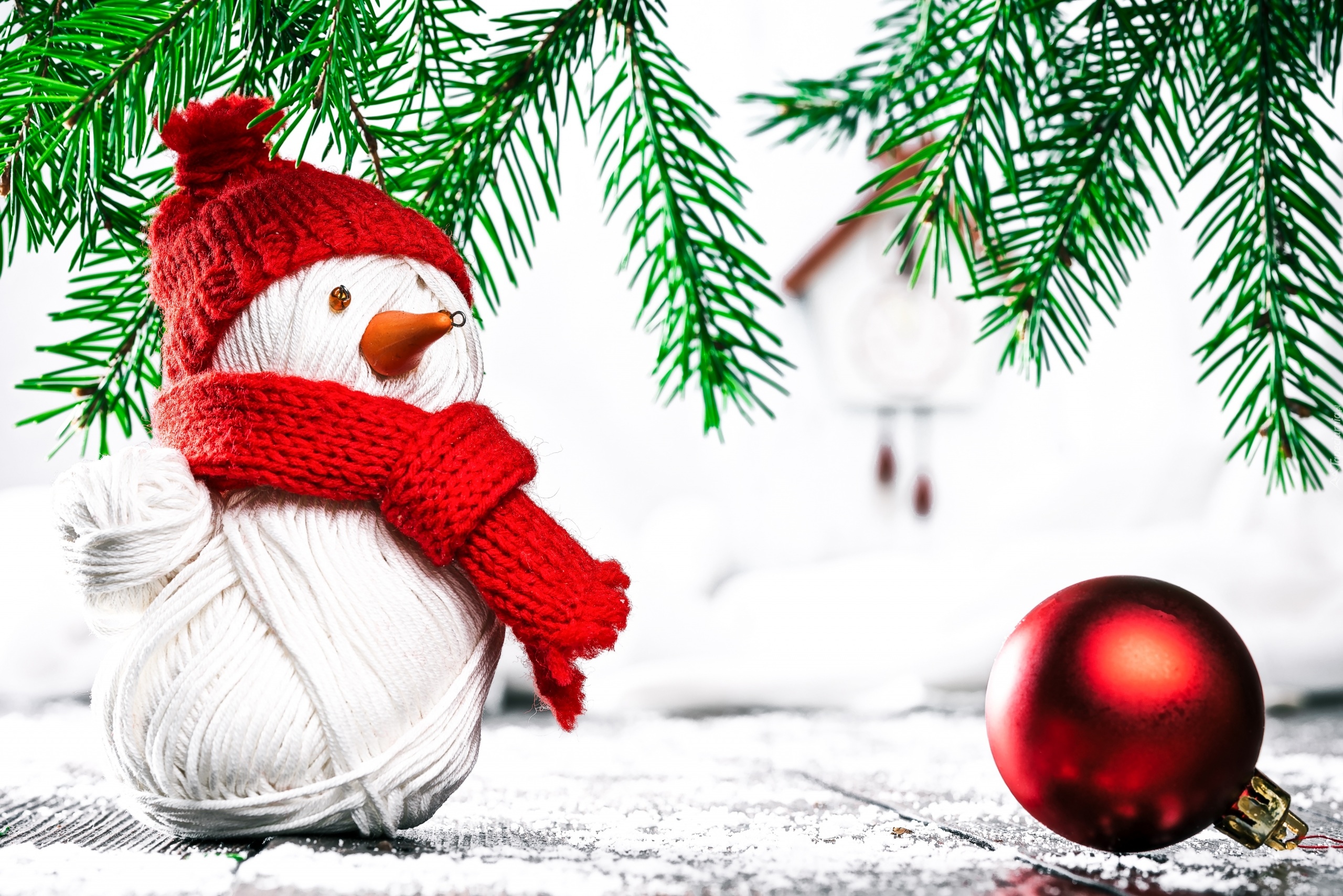 Edytor tapety: Bałwanek w czapce i szaliku pod gałązkami