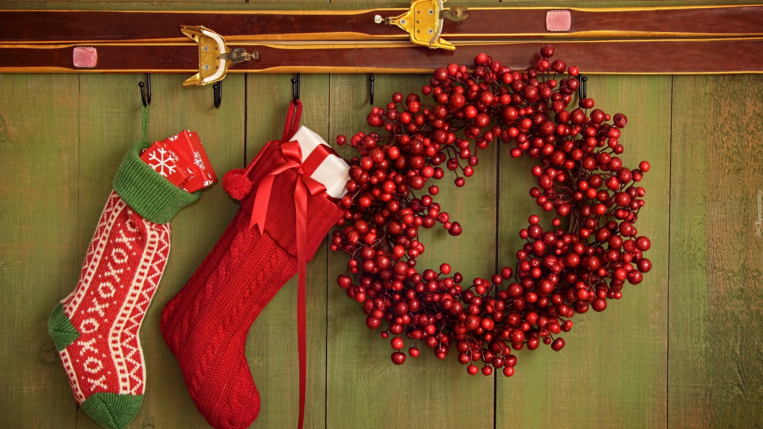 Edytor tapety: Skarpety z prezentami wiszące obok wieńca