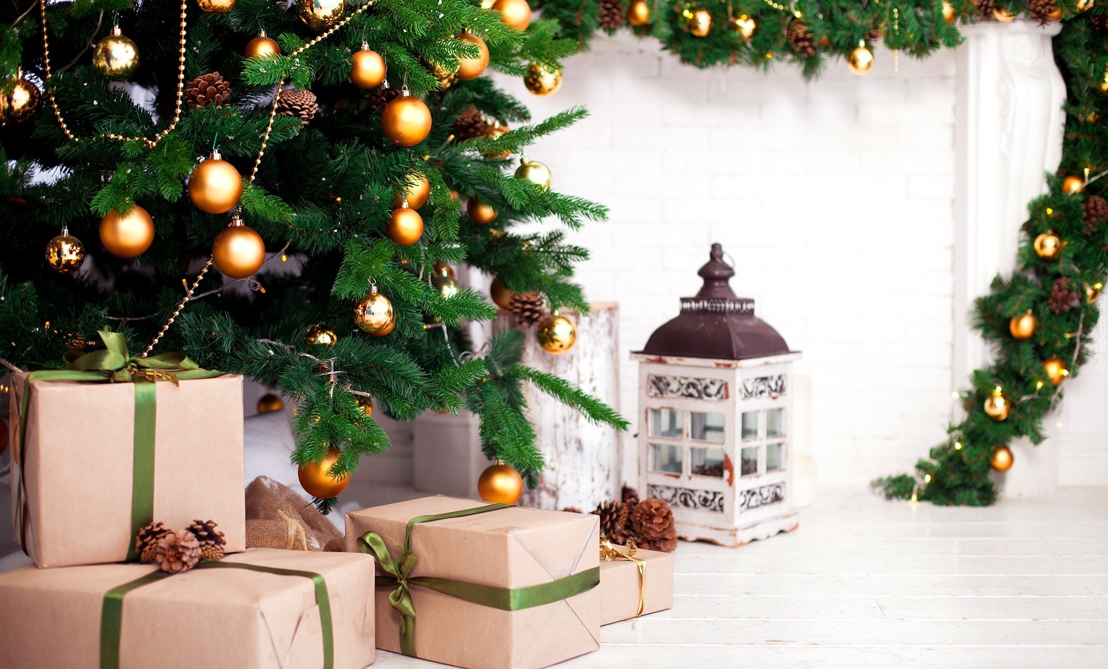 Edytor tapety: Lampion i prezenty pod choinką