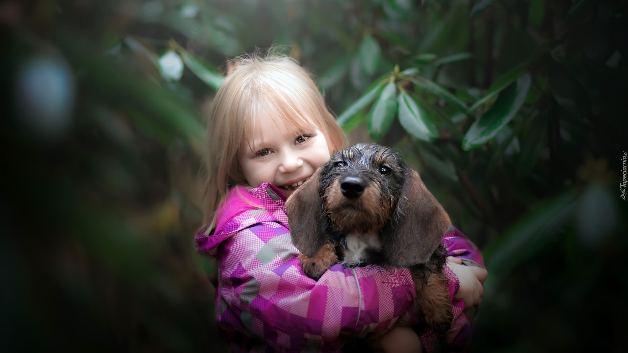 Edytor tapety: Dziewczynka z jamnikiem na rękach