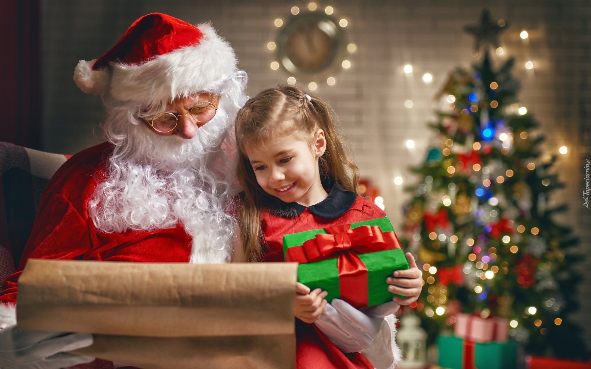 Edytor tapety: Dziewczynka z prezentem od Mikołaja
