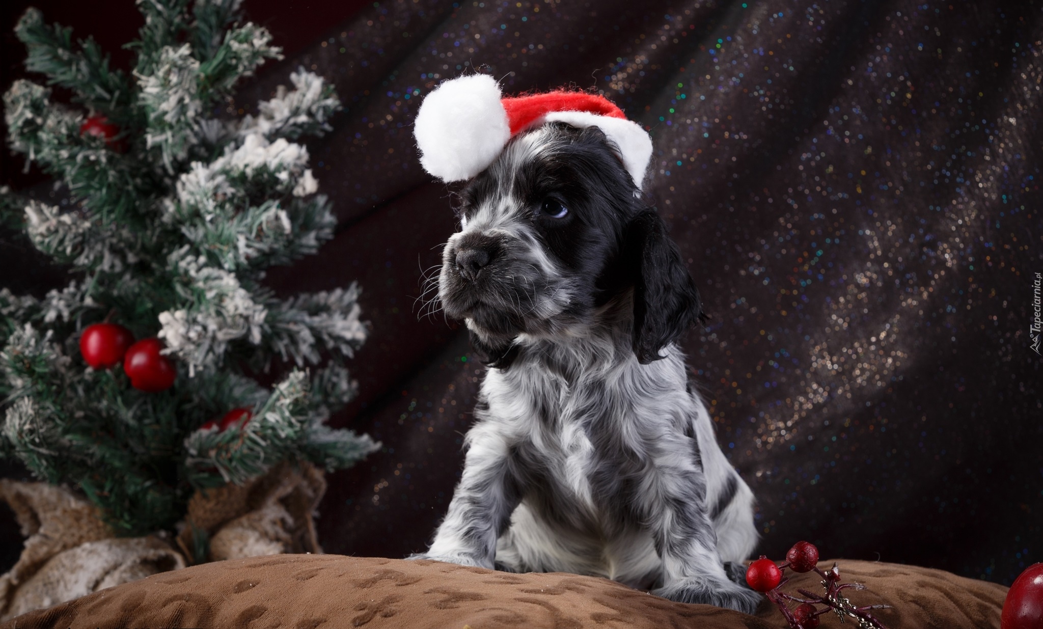 Edytor tapety: Springer spaniel angielski w czapce Mikołaja