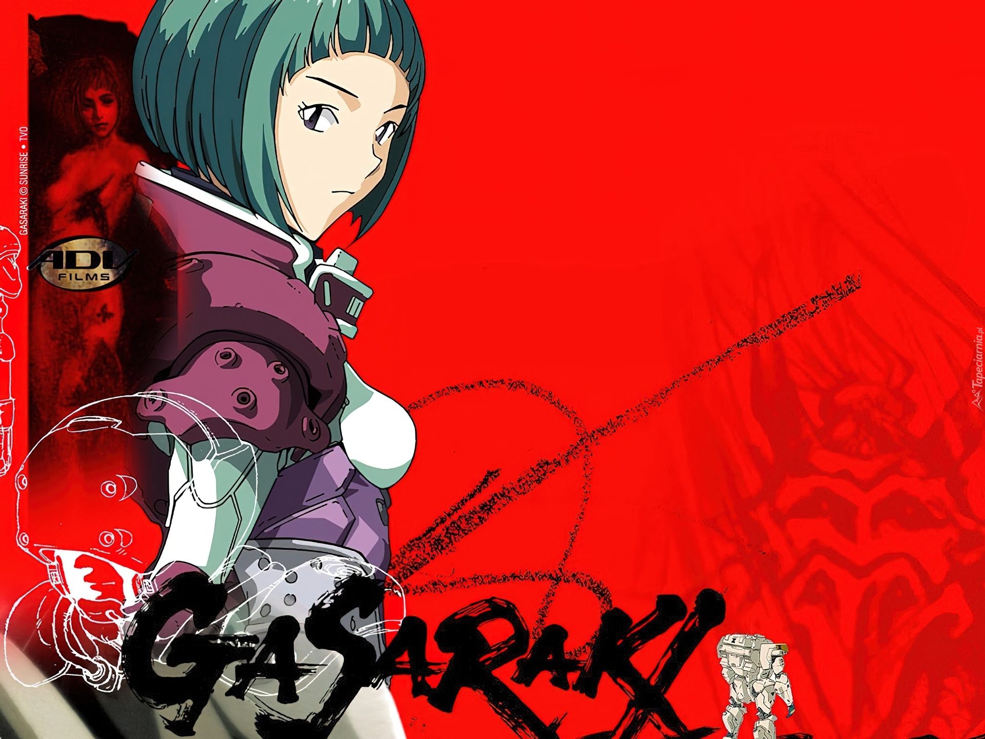 Edytor tapety: Gasaraki, kobieta, napis, robot