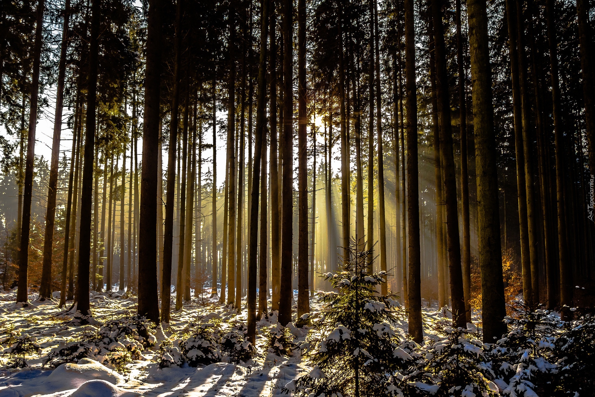 Edytor tapety: Ośnieżony las w blasku słońca