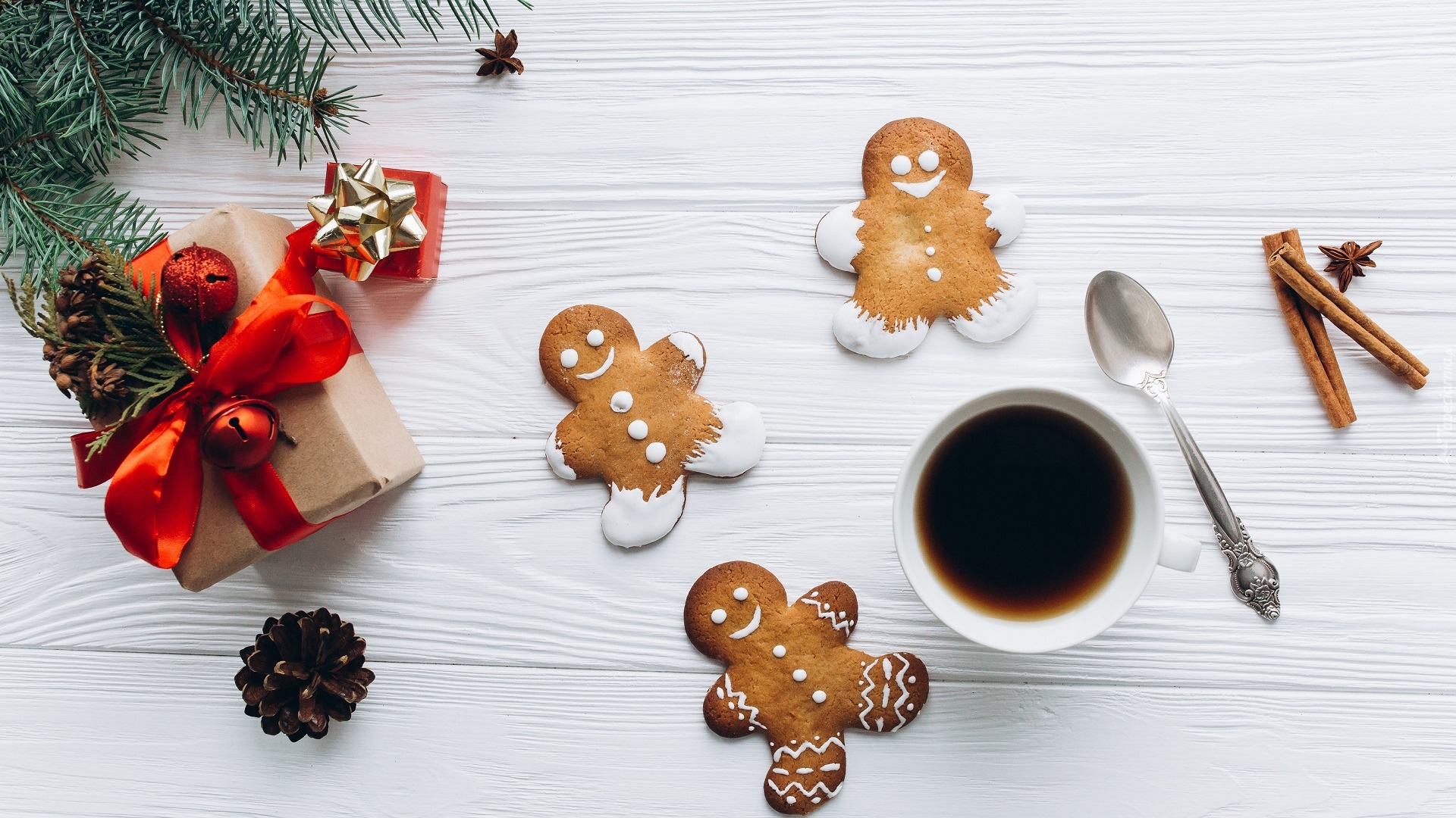 Edytor tapety: Lukrowane pierniki obok filiżanki z kawą