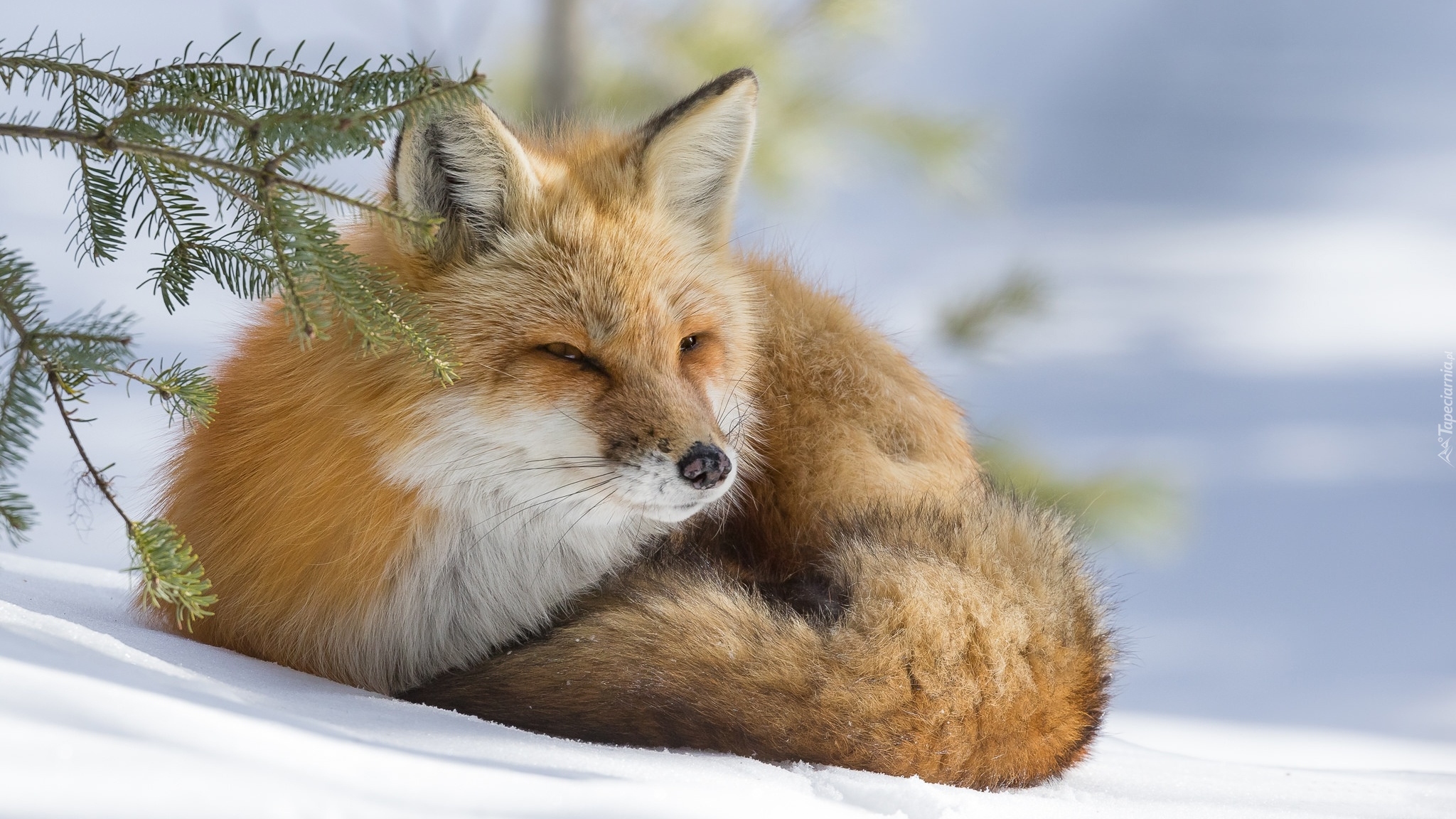 Edytor tapety: Rudy lis leży na śniegu