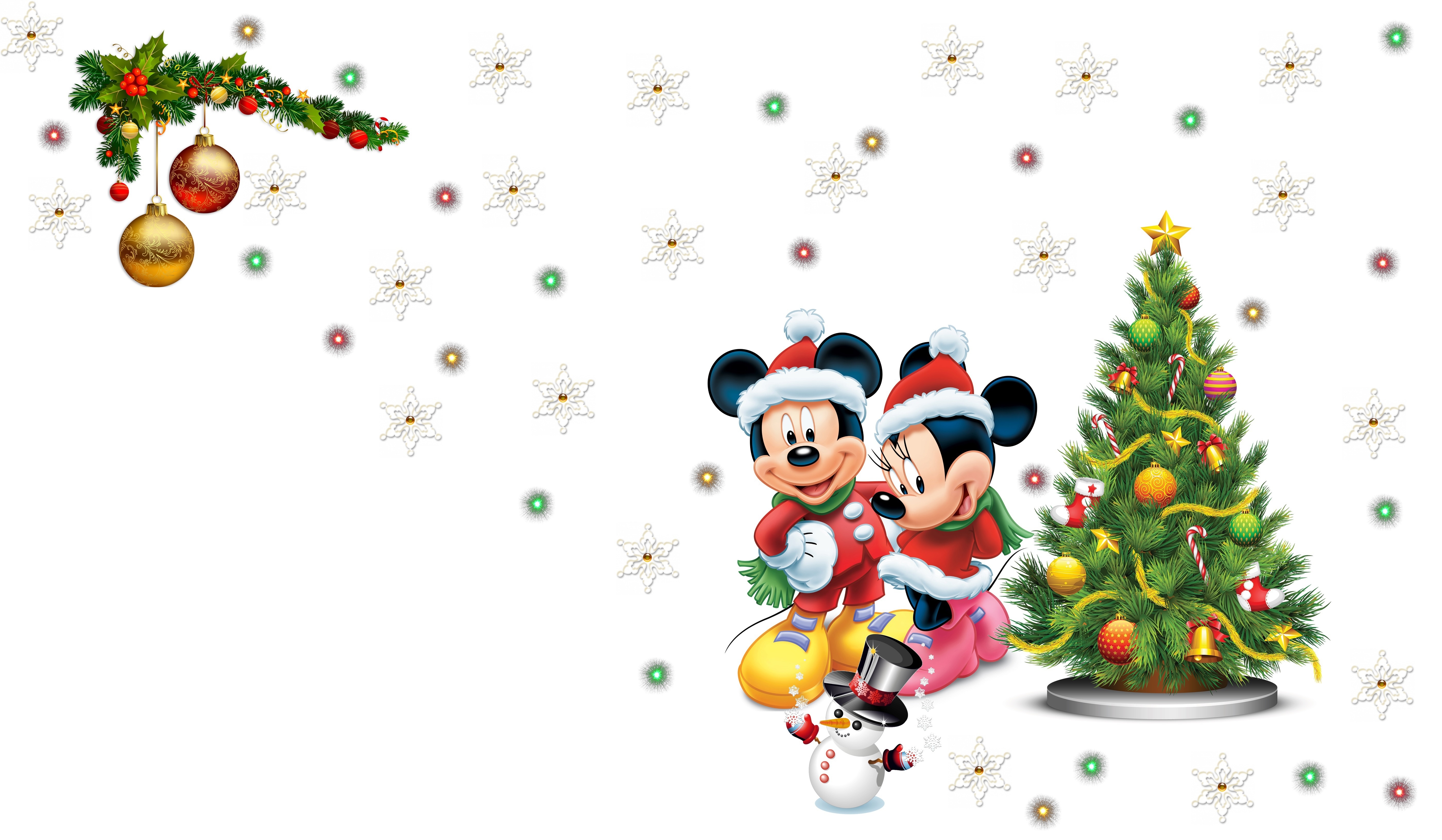 Edytor tapety: Myszki Miki i Minnie z bałwankiem przy choince