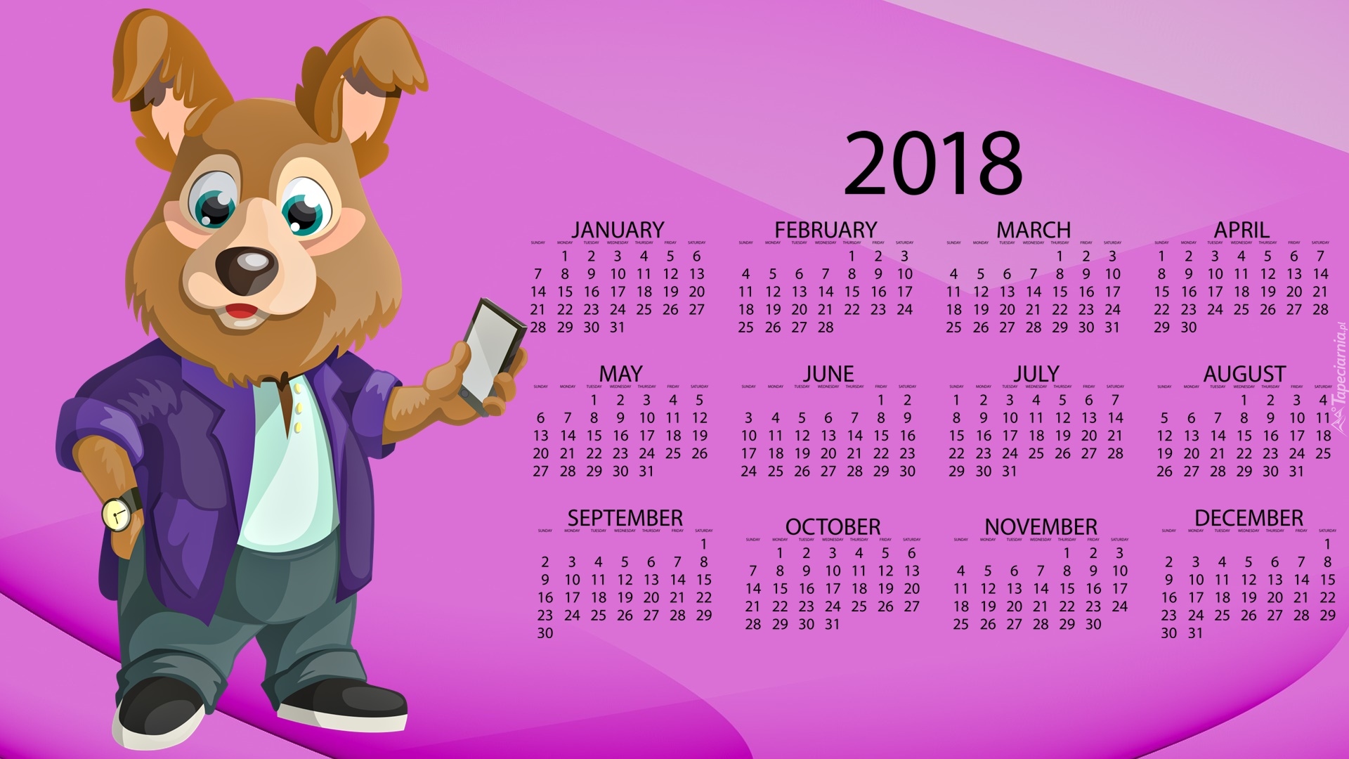 Edytor tapety: Kalendarz z graficznym psem na 2018 rok