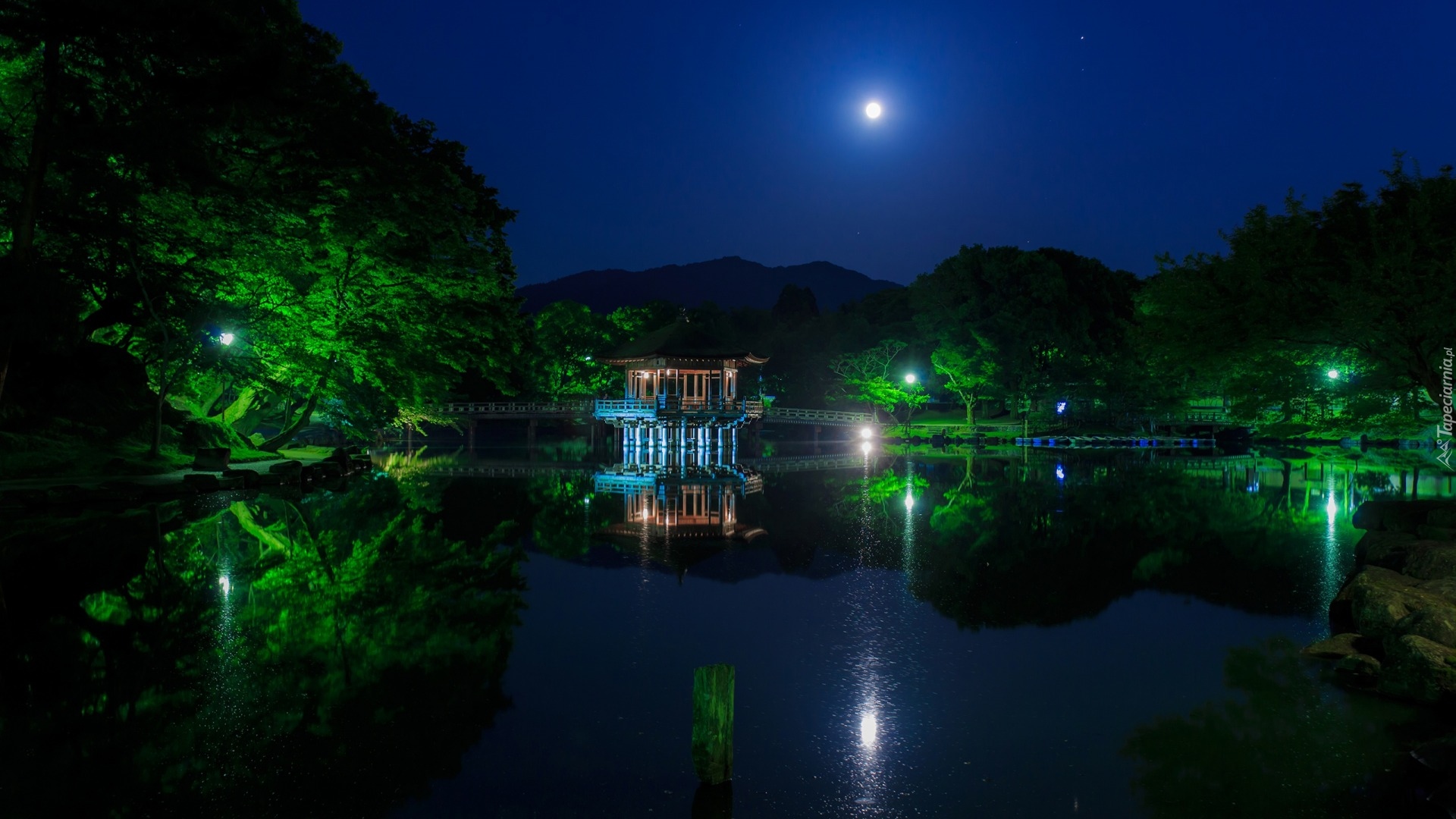 Edytor tapety: Altana Ukimido Pavilion nad stawem w Nara Park
