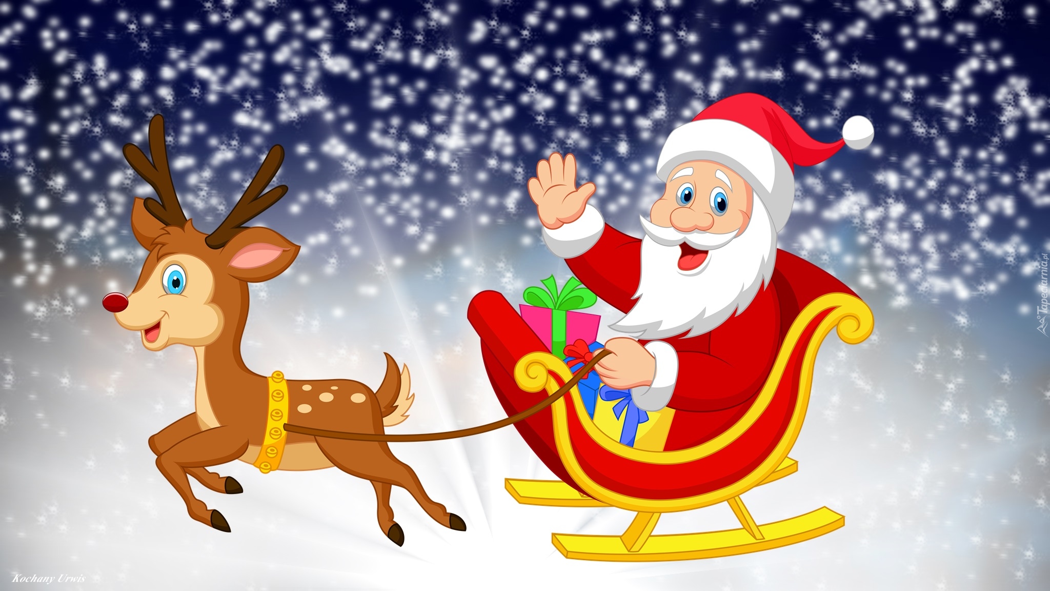 Edytor tapety: Mikołaj w saniach ciągniętych przez renifera