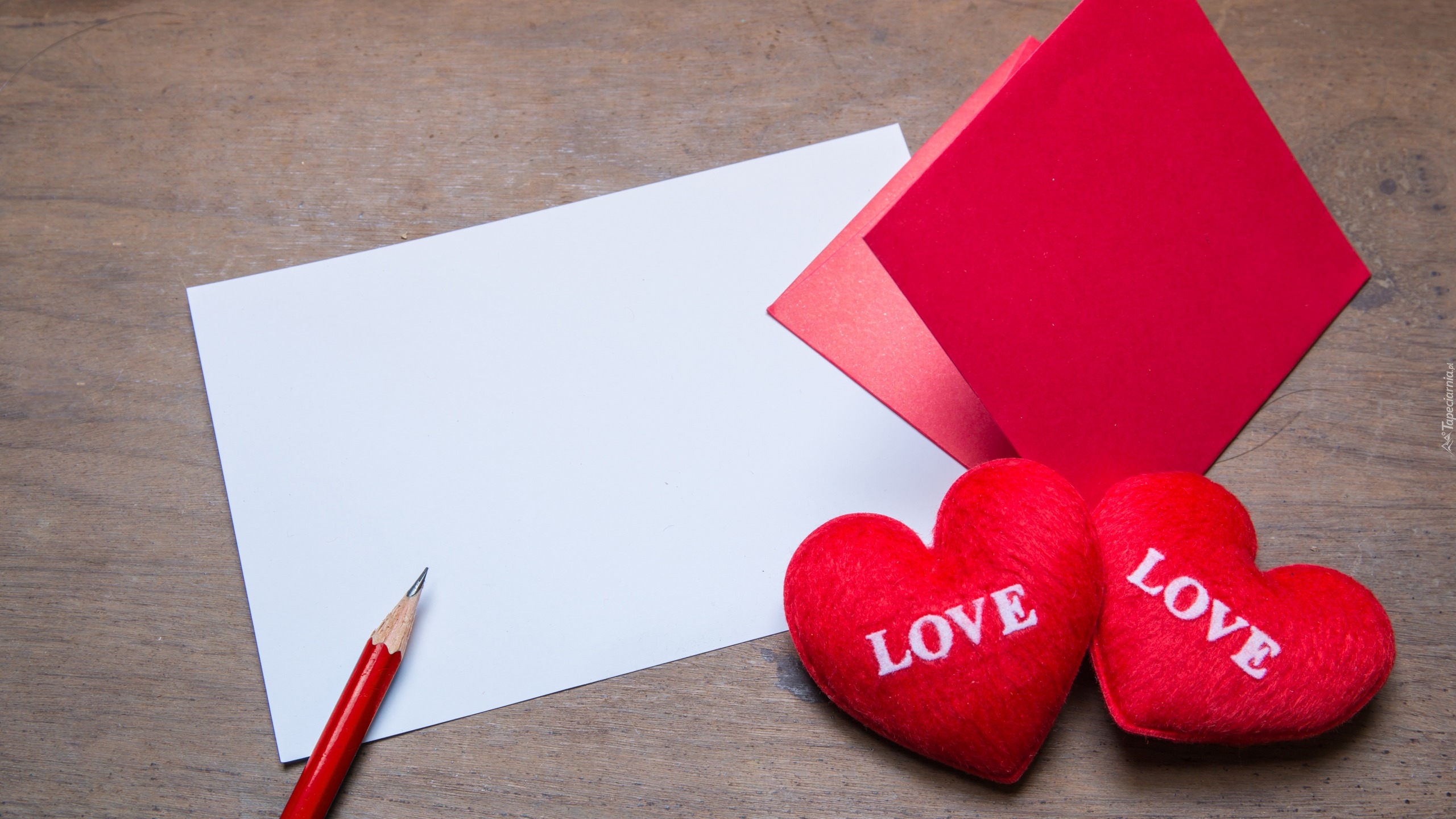 Edytor tapety: Dwa serca z napisem Love obok kartek