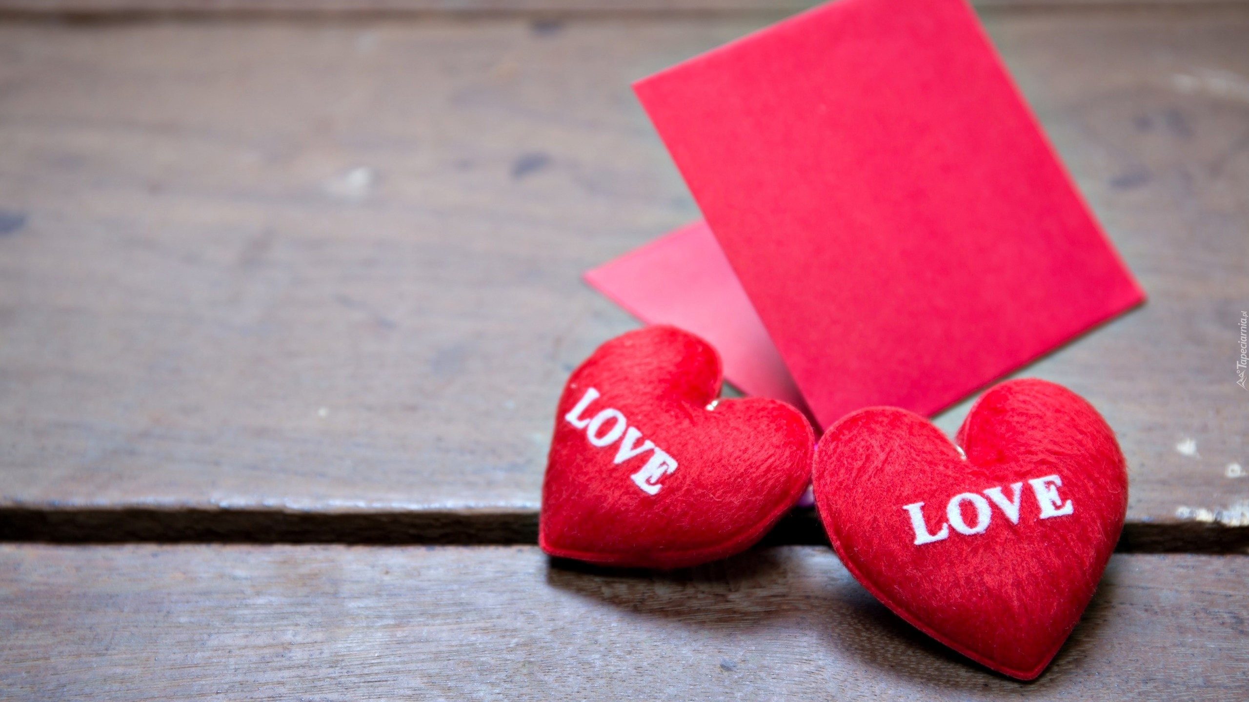 Edytor tapety: Dwa serca z napisem love i czerwona kartka