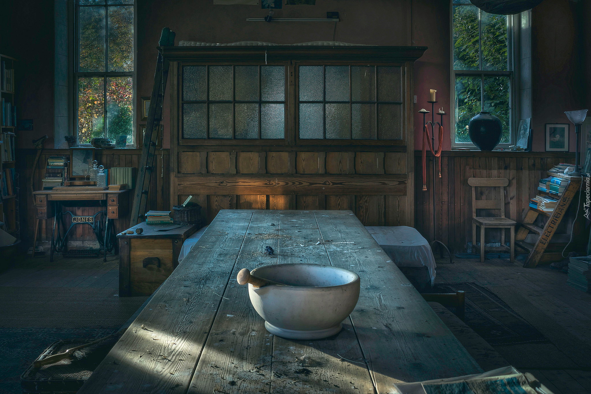 Edytor tapety: Pokój z drewnianym stołem na środku