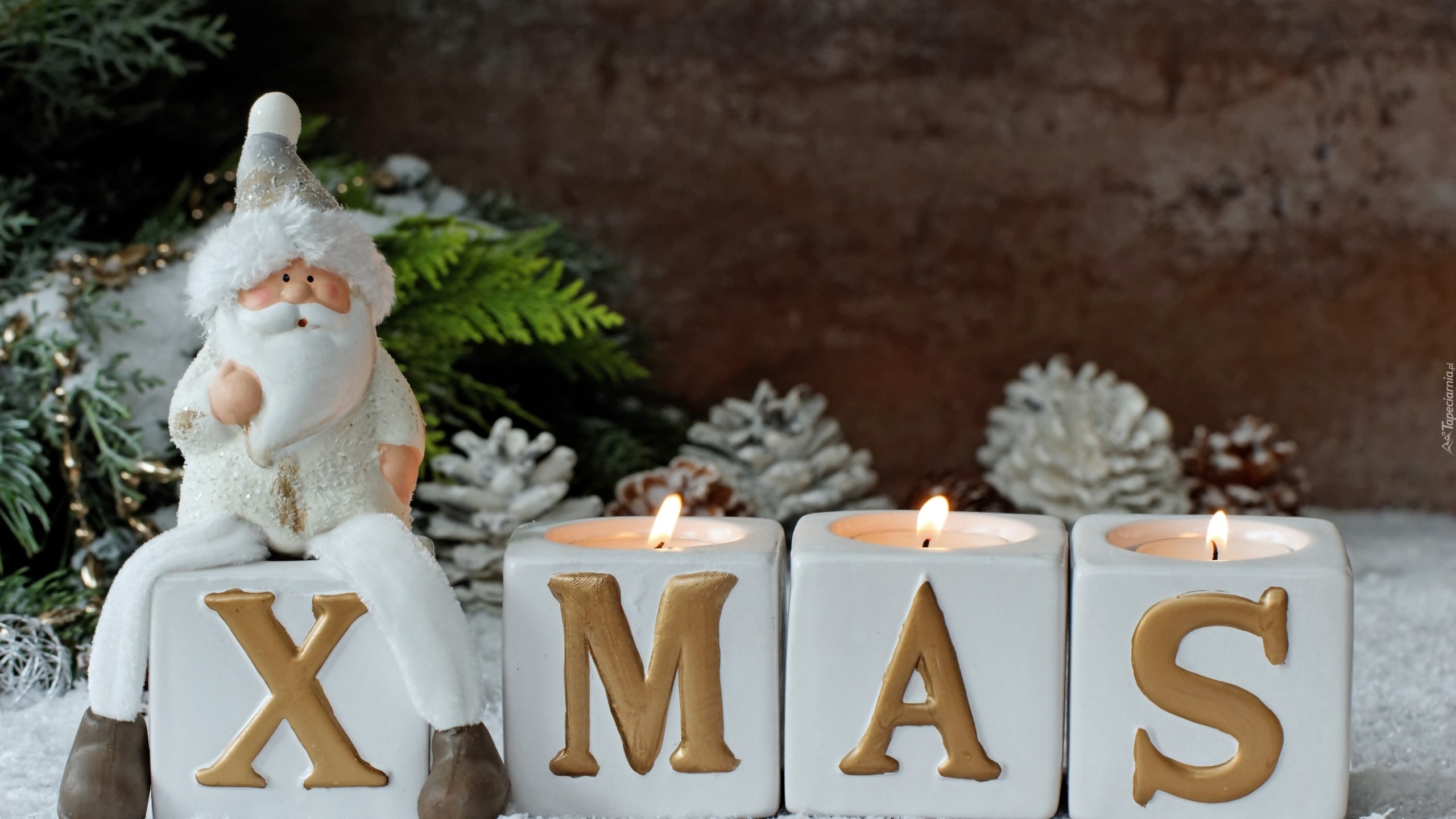 Edytor tapety: Figurka Mikołaja i palące się świeczki