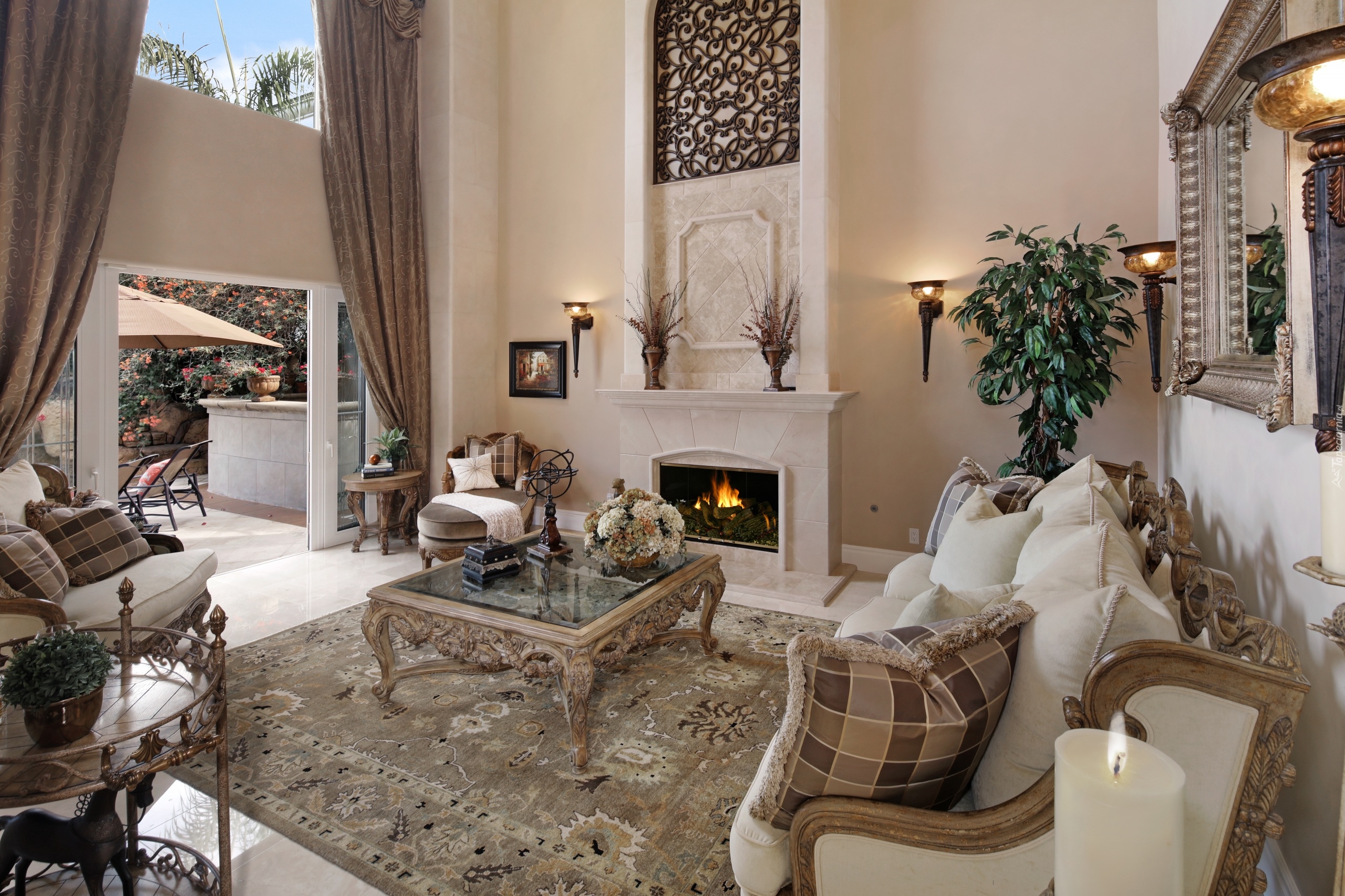 Edytor tapety: Wnętrze umeblowanego salonu z wyjściem na taras
