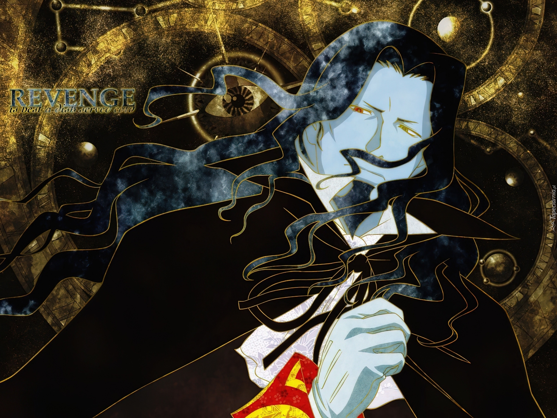 Edytor tapety: Gankutsuou, facet, peleryna, napis